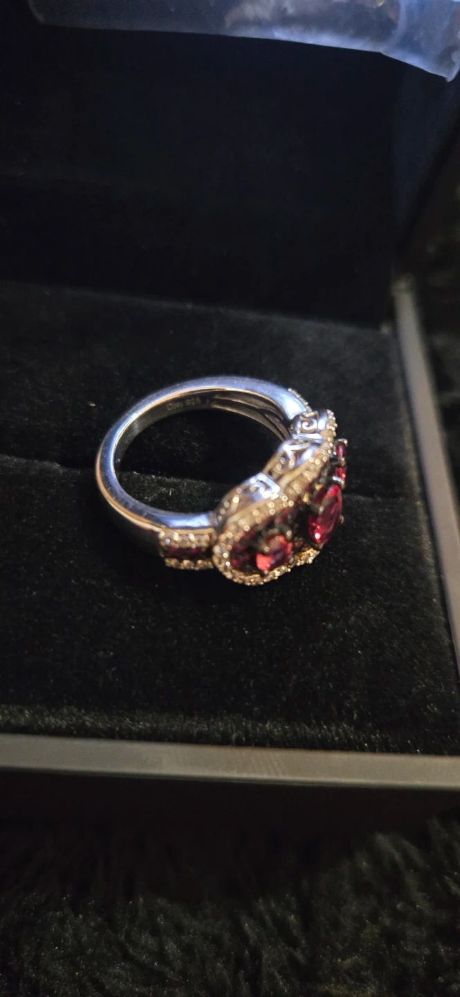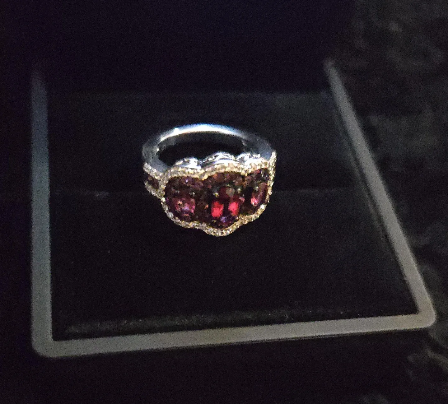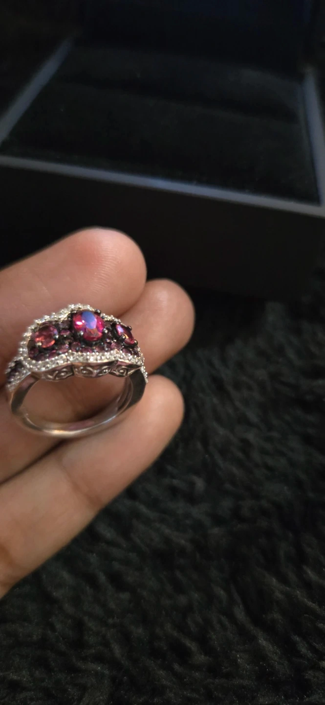 Selling a beautiful Rubellite, White Zirconia 1.85ctw ring in Rhodium over Sterling Silver ring. It comes in a box for safekeeping. This ring would make a lovely addition to your jewelry collection!