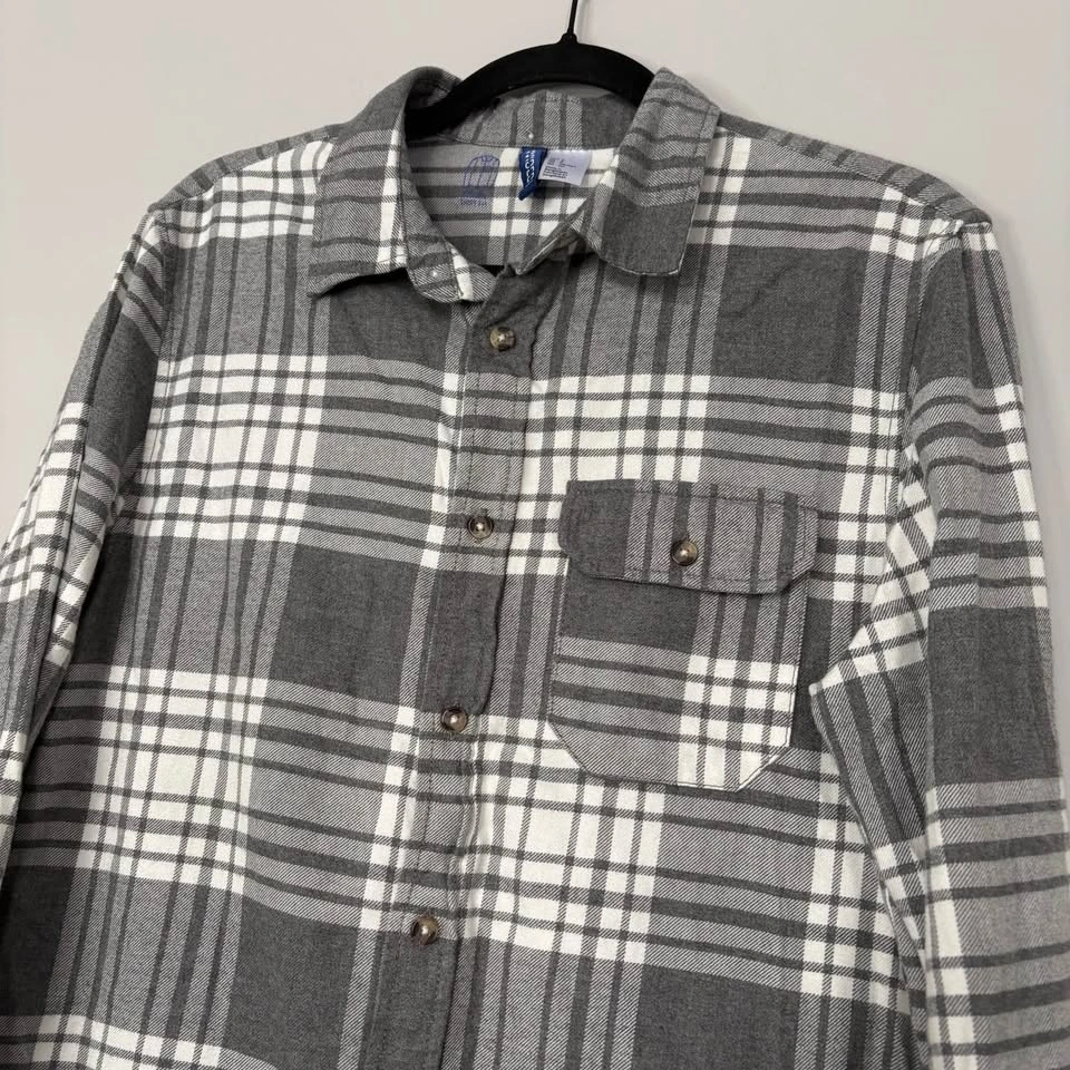 H&M Men's White & Grey Flannel Shirt - Size Small