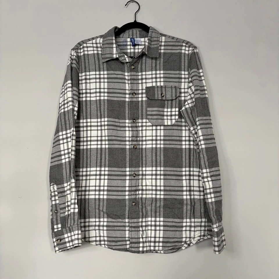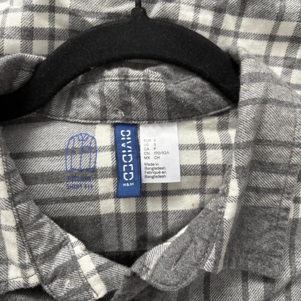 H&M Men's White & Grey Flannel Shirt - Size Small