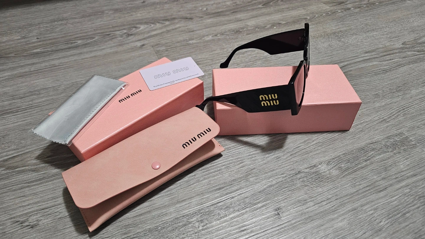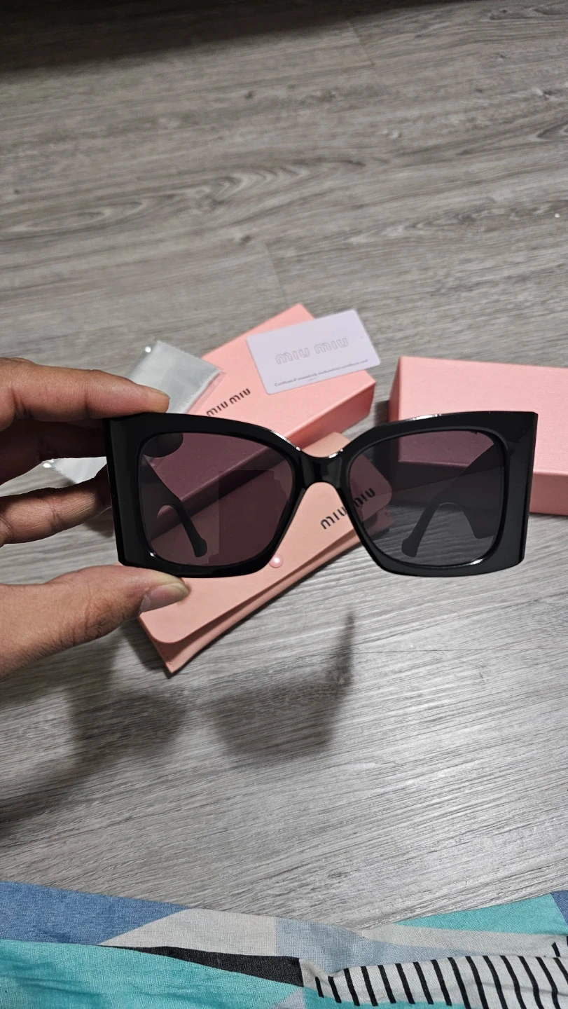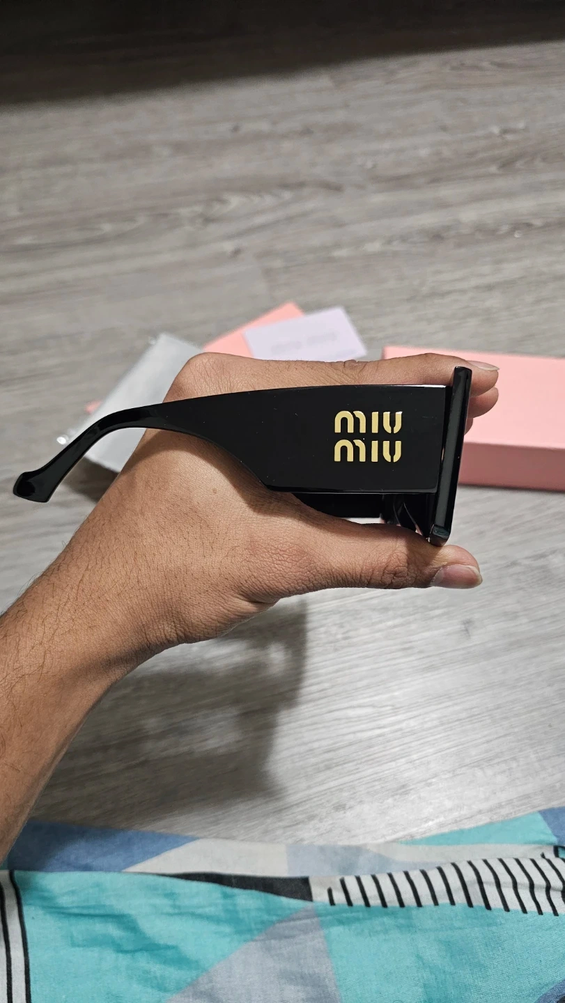 These Miu Miu sunglasses feature a stylish black rectangular frame.