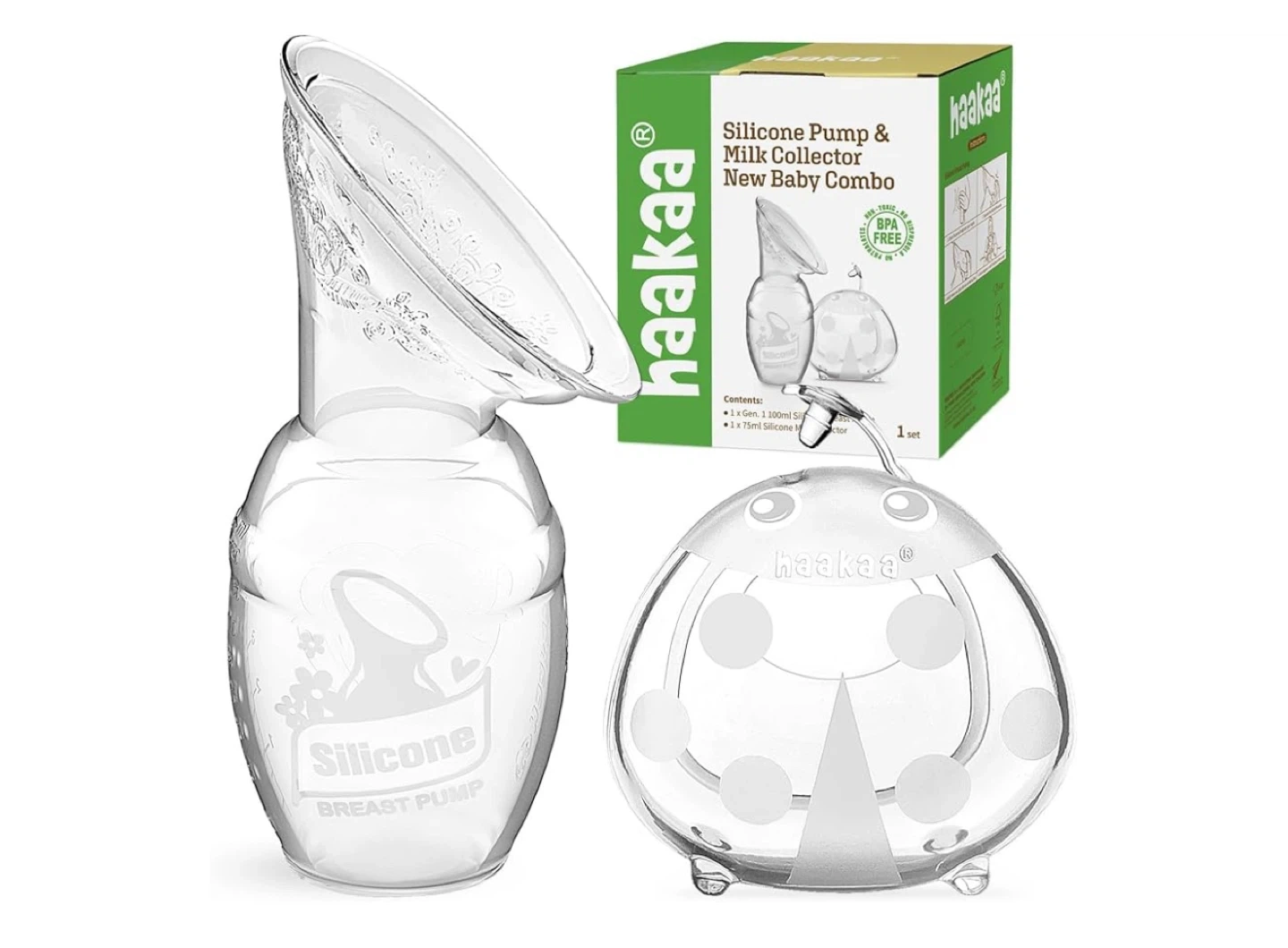 65Selling a Haakaa Silicone Breast Pump and Milk Collector New Baby Combo! This set is lightweight and compact, perfect for use at home or on the go. Key features: - Gen. 1 Pump: 4 oz/100ml - ladybug Milk Collector: 2.5 oz/75ml