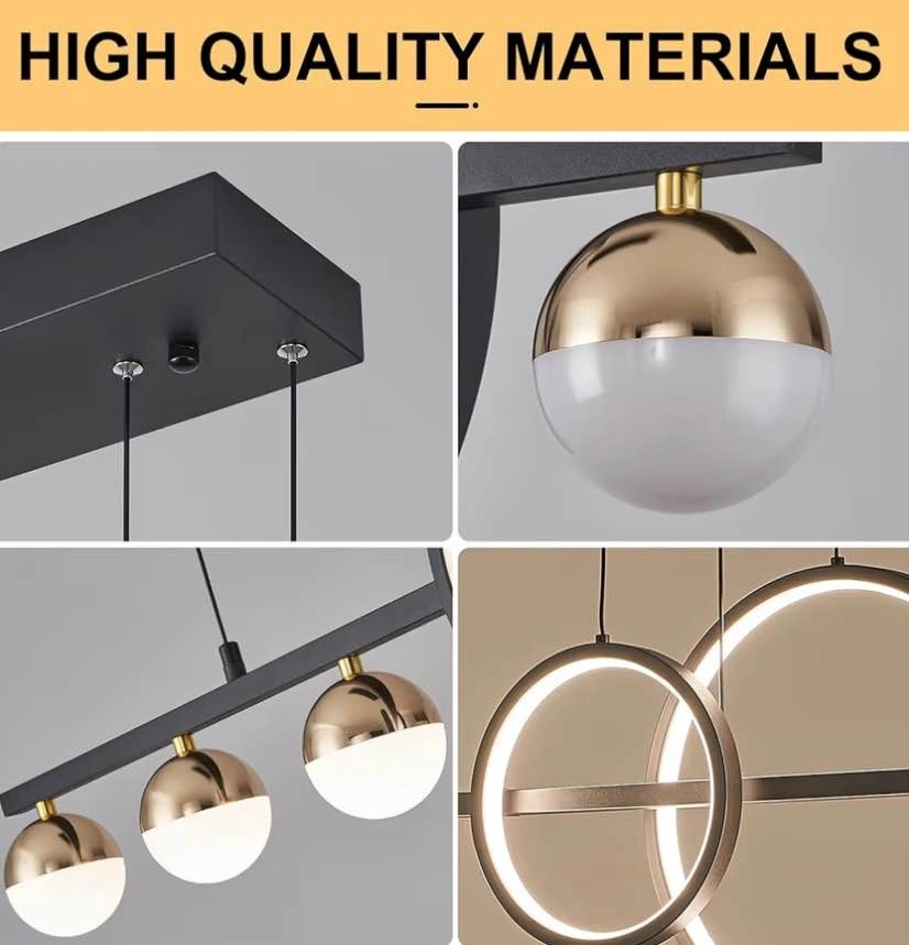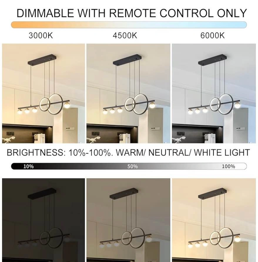 Modern Black & Gold LED Chandelier - Dimmable, Remote