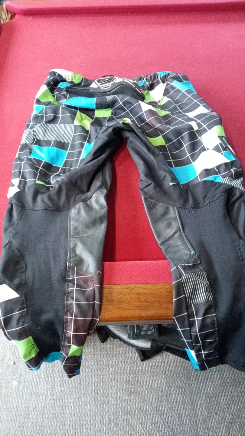 ONE Industries motocross pants. Size 36. Black with checkered and graphic accents. Built for riding.