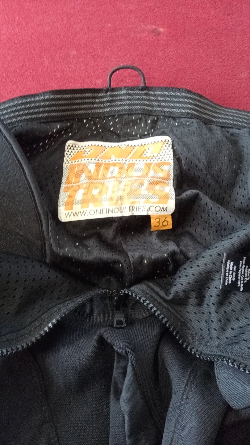 ONE Industries motocross pants. Size 36. Black with checkered and graphic accents. Built for riding.