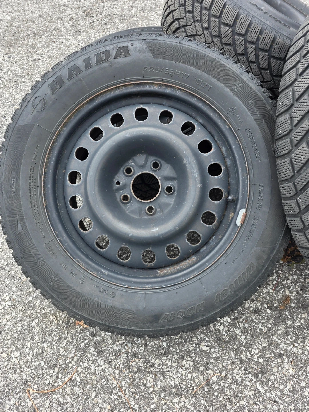 10Selling a set of Haida Winter HD617 tires with rims . The size is 225/65R17. Great for winter driving! 5x114 bore 67.1mm