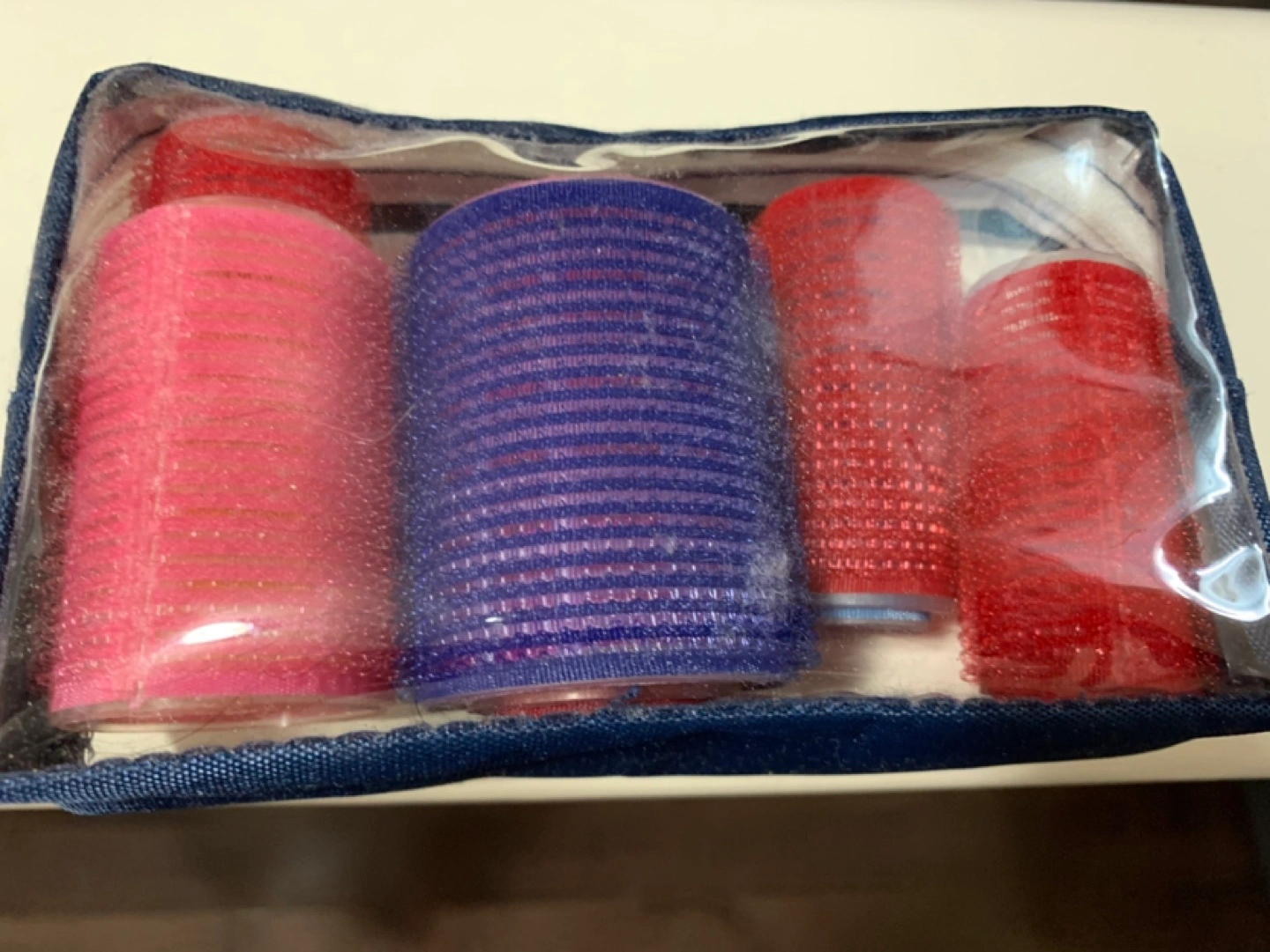 48Set of four hair rollers. Two colours, pink and purple. Included carrying case.