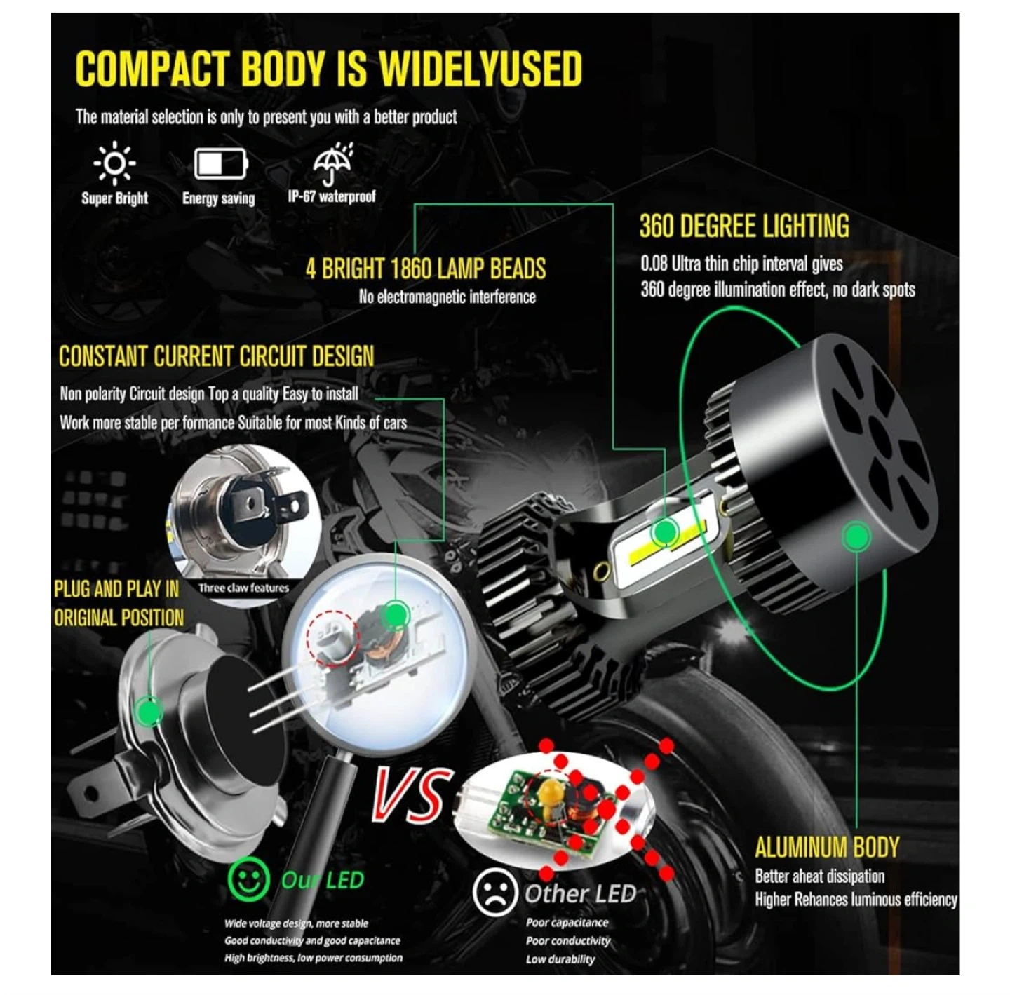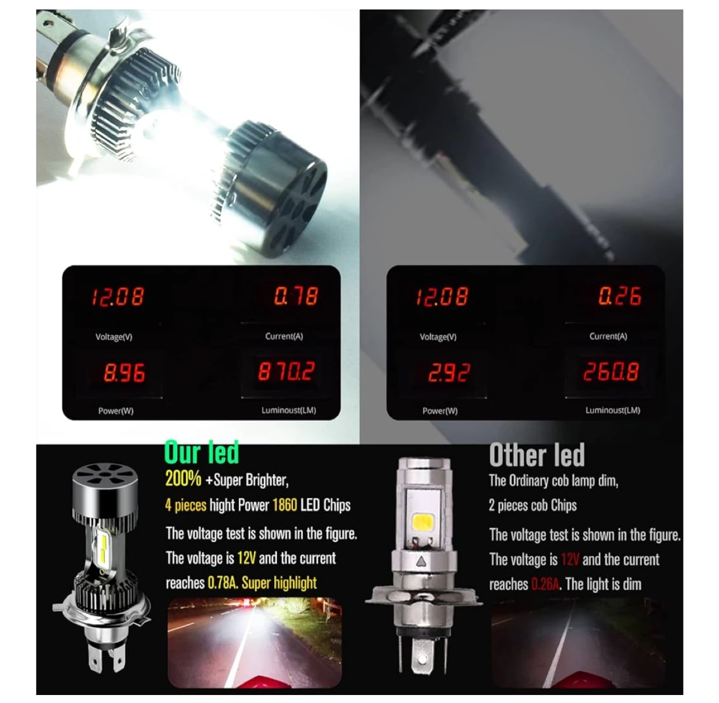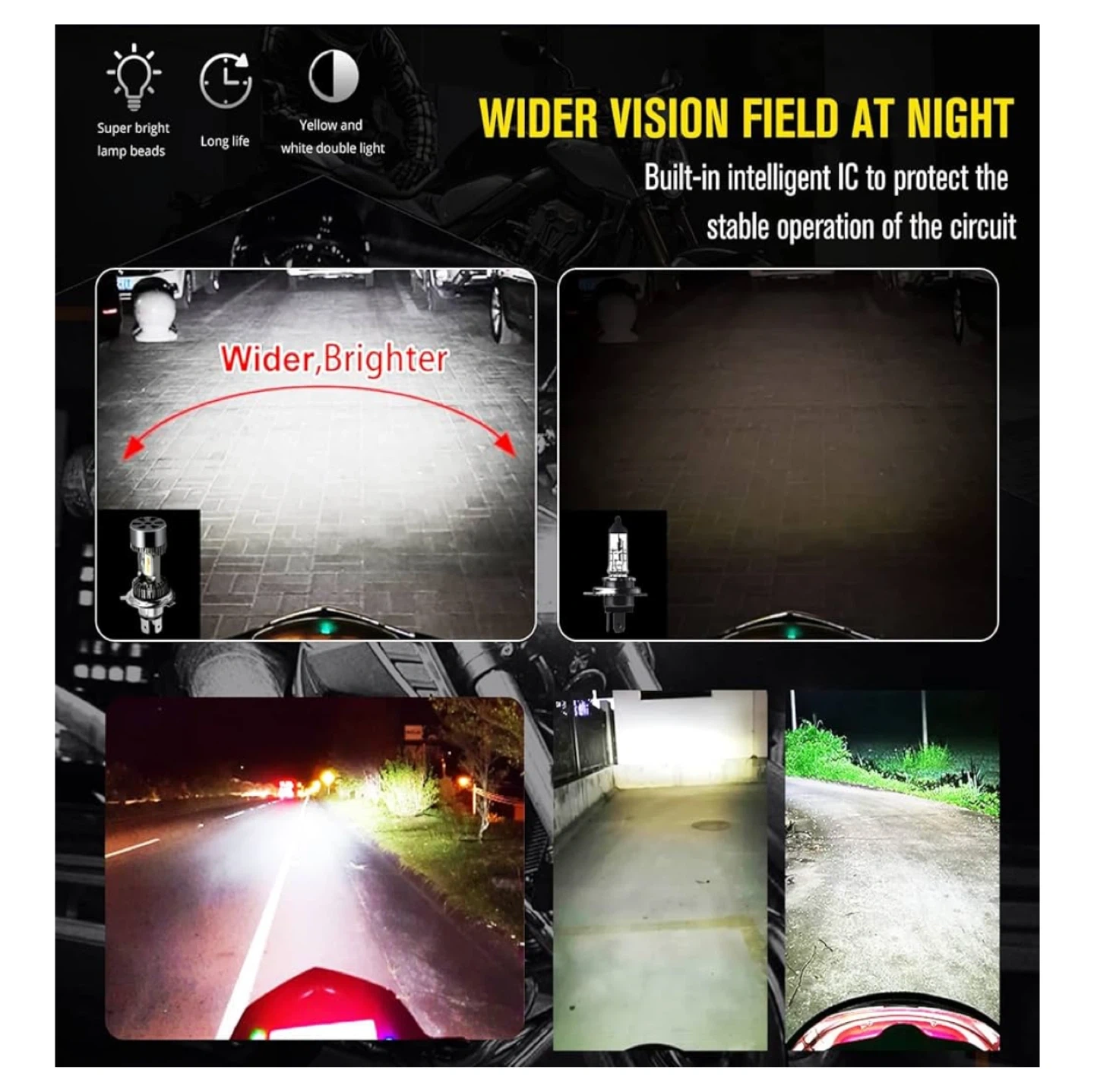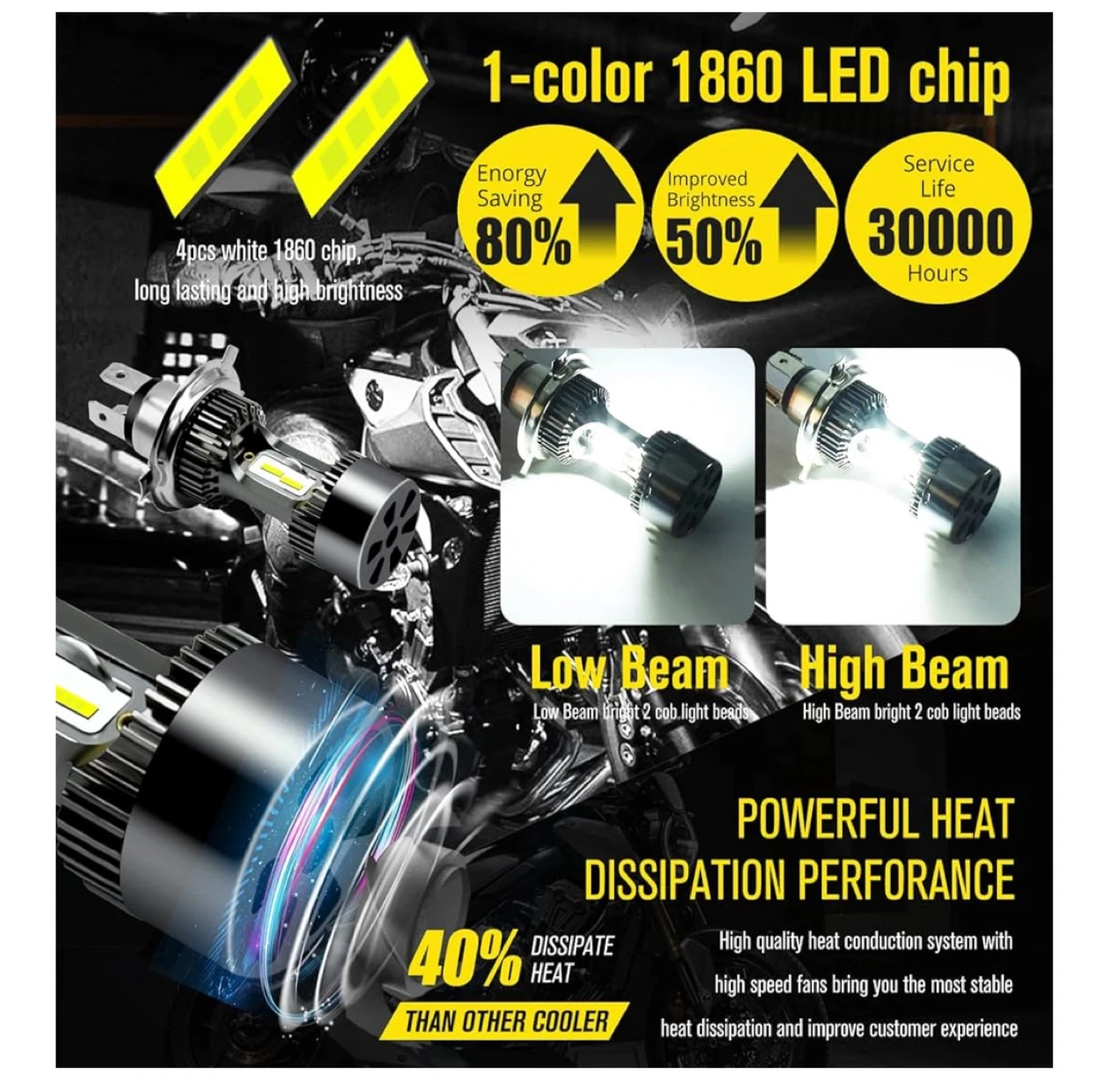 Selling a HAISECA H4 Motorcycle LED Headlight Bulb. It features a super bright white/amber light with 4x5730 chips. It's designed with a fan for motorcycle, ebike, and more. The bulb is IP67 waterproof and easy to install.