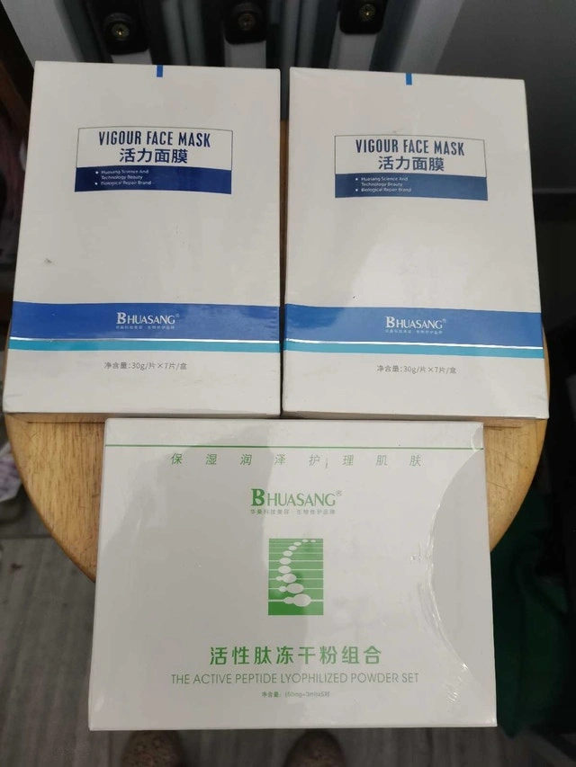 I'm selling two boxes of BHUASANG Vigour Face Masks and one BHUASANG Active Peptide Lyophilized Powder Set, all brand new for a revitalizing skincare experience. These masks and powder set are designed to rejuvenate your skin, leaving it feeling refreshed and radiant. Here's a little secret: if this ad is still up, it means these masks and powder set are still available!