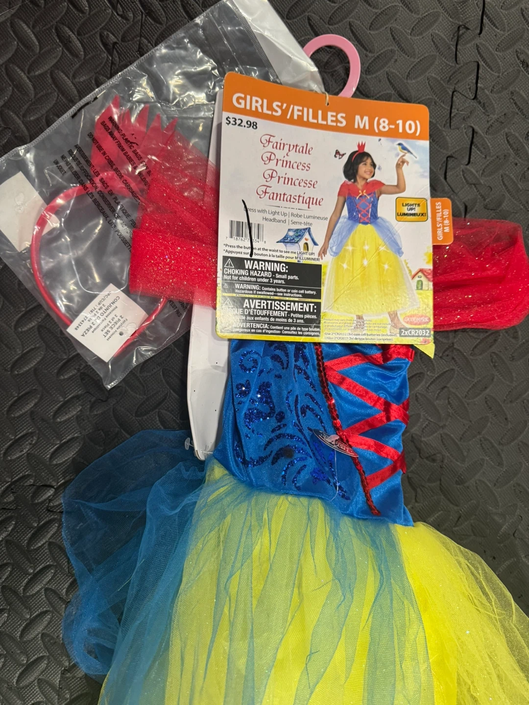 HALLOWEEN COSTUME- GIRLS SNOW WHITE DRESS- MEDIUM 8-10 NEW IN PACKAGE INCLUDES: DRESS AND HEADBAND PICKUP IN COURTICE NEAR HWY 2 AND COURTICE RD all sales are final