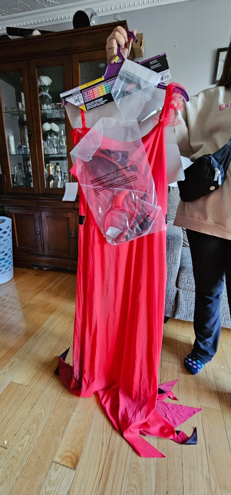 15Witch or Vampire Costume Adult standard size. Comes with dress robe and a belt. Only worn once. Asking $10. Little Lamb Costume Little lamb (infant girls) 12-24 months. Missing the tights and booties, super cute, worn once. Asking $10. Num Noms Costumes -Rainbow Pop (girls size 4-6) missing Headband and ring, worn once, $5 -Candie Puffs (girls size 4-6) missing ring, worn once $10 Cruella Deville Costume Womens size medium. Comes with the dress and gloves, just missing the choker. Worn once. Asking $15. Glam Devil Womens size large. Comes with dress, headband and wings. Was never worn. Asking $15.