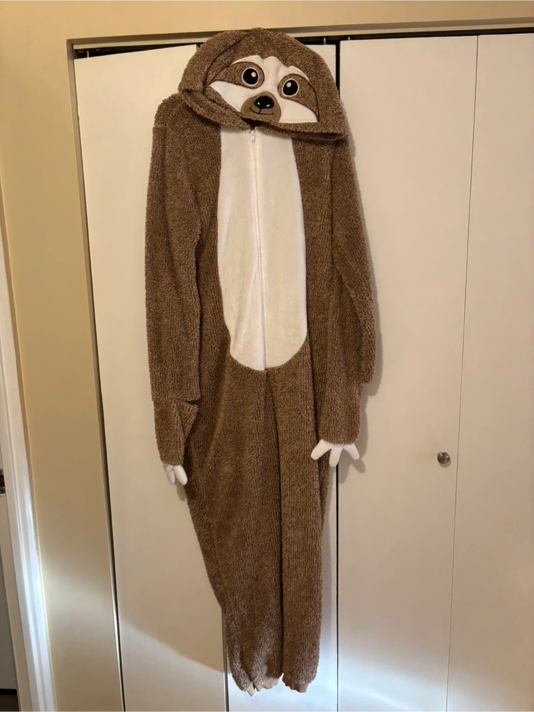 35Super cozy sloth onesie! Perfect for lounging around the house on a chilly day or for going trick or treating outside. It's in great condition and ready for a new home