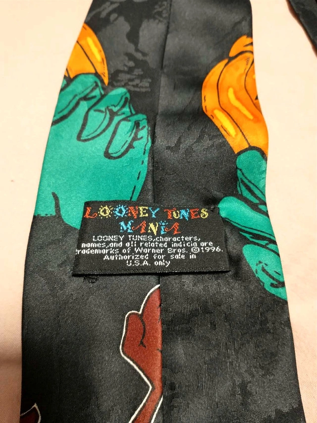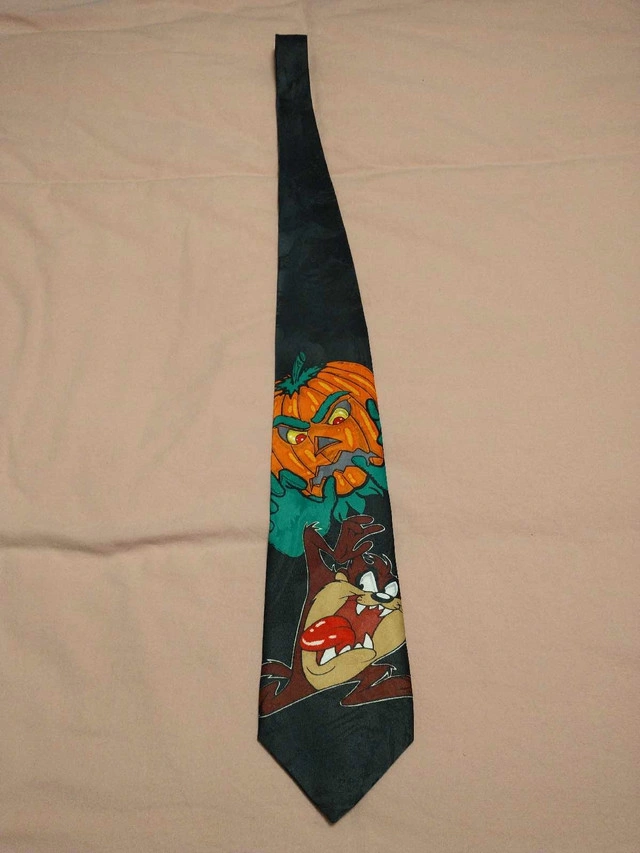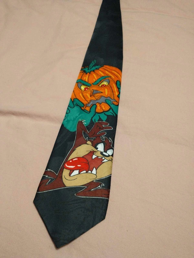 15Vintage 1996 Looney Tunes Mania necktie. Tasmanian Devil and Jack O'Lantern. 4 inches wide, 56 inches long. 100% Polyester. Pick up near Banwell and the Expressway.