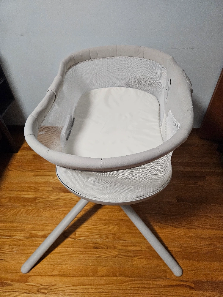 Selling a Halo BassiNest Swivel Sleeper since my twins have outgrown it and moved to a crib now. The bassinet was bought 6 months ago and is in great condition. This bassinet is designed to swivel, making it easy to bring your baby close for feeding or comforting without needing to get out of bed. Perfect for those early months! We also have 2 mattress protectors and 2 fitted sheets for this bassinet, and are available for an additional $20