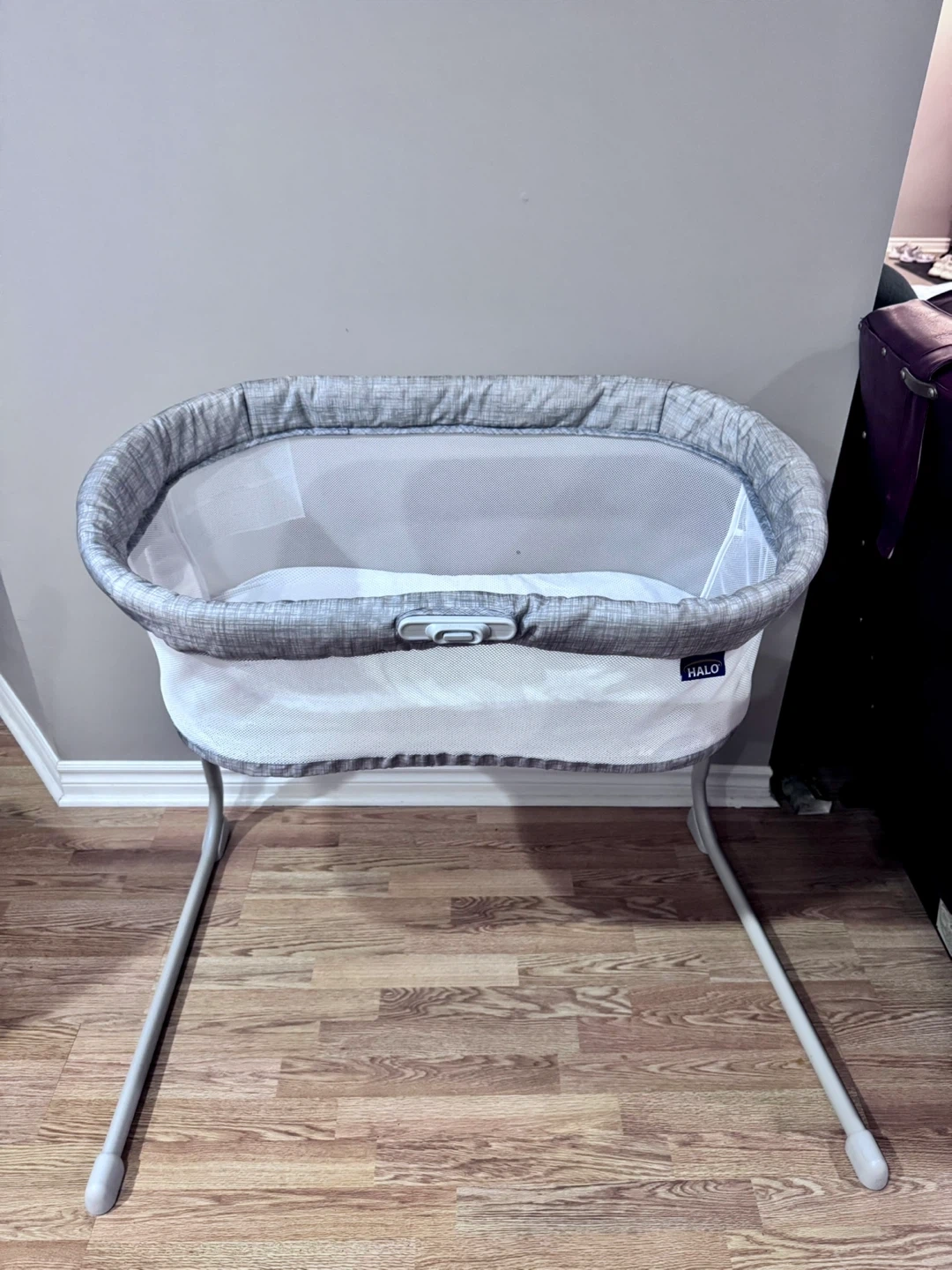 Selling a Halo BassiNest Swivel Sleeper in great condition! π Perfect for keeping your newborn close during those early months. The 360Β° swivel design makes it easy to reach your baby at night, while the breathable mesh sides provide great airflow and visibility. πΆβ¨ πΌ Details: β’ Barely used and newly washed π§Ί β’ From a non-smoking, pet-free home ππΎ β’ Can be separated into 2 parts for easy transport π β’ Fits in small cars or SUVs π β’ π΅ Fixed price: $40 β’ π€ Cash and pick-up only π€ A safe, comfortable, and convenient sleeper β perfect for your little oneβs sweetest dreams! ππ