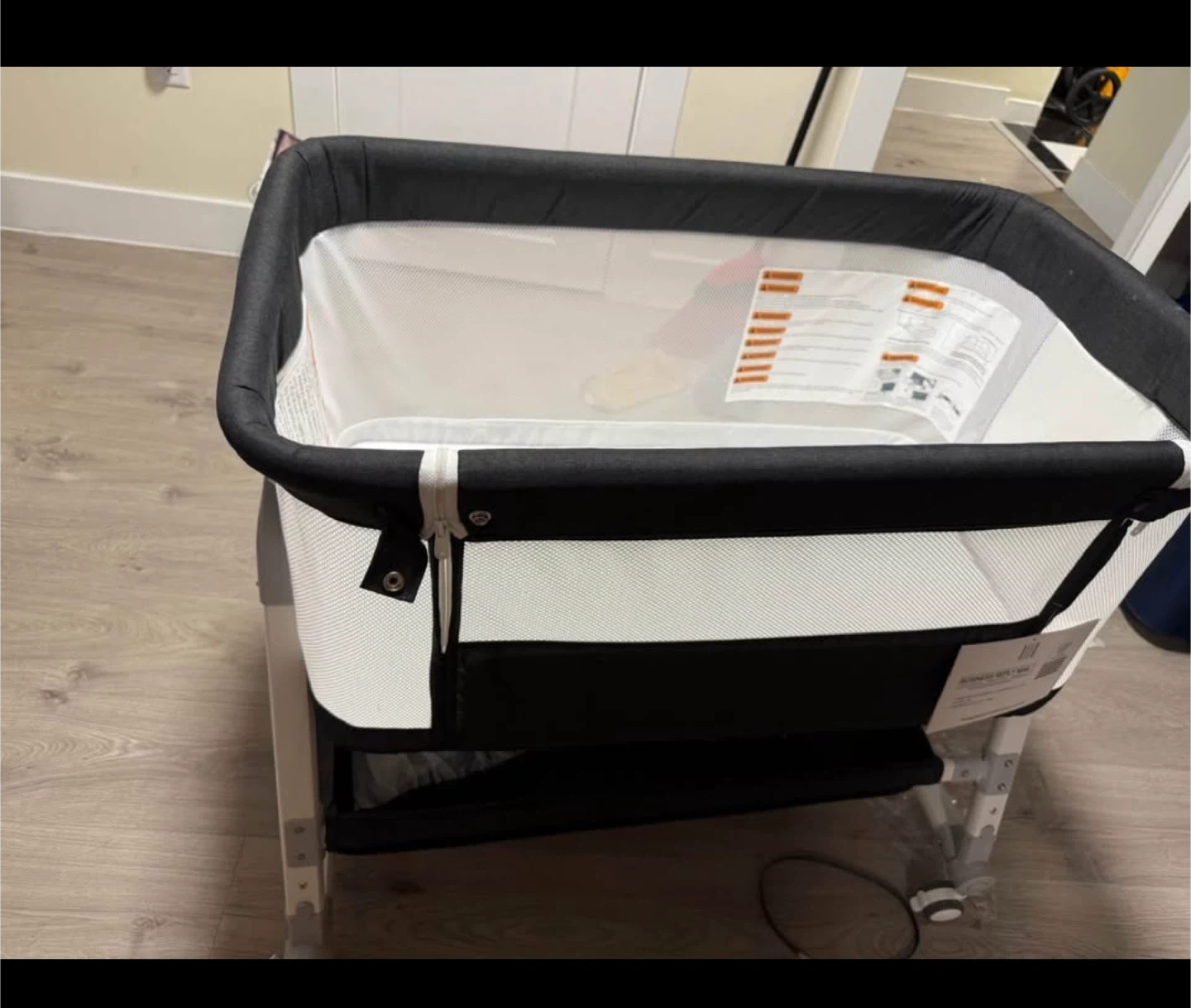 Selling a HALO BassiNest Swivel Sleeper in great condition! This bassinet is perfect for keeping your little one close by during the night. It swivels 360 degrees, making it easy to reach your baby from bed. The mesh sides provide breathability and visibility. It also has a storage pocket underneath for keeping essentials close at hand