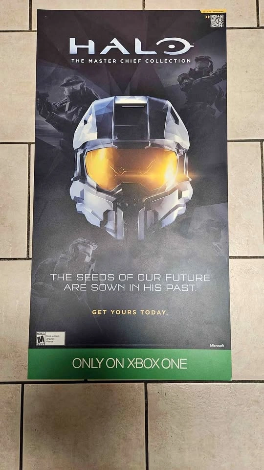 10This is a store display poster used to advertise the release of Halo the Master Chief Collection. This poster is not your standard cheap thin paper print. It is printed on a much thicker and higher quality plastic then standard. I got it in 2014 at a Future Shop when they were closing down (RIP). It has hung on my wall for 5 years before being placed in storage (not rolled up) for another 5 years. Pick up in Farrant Crescent Abbotsford from non smoking house hold