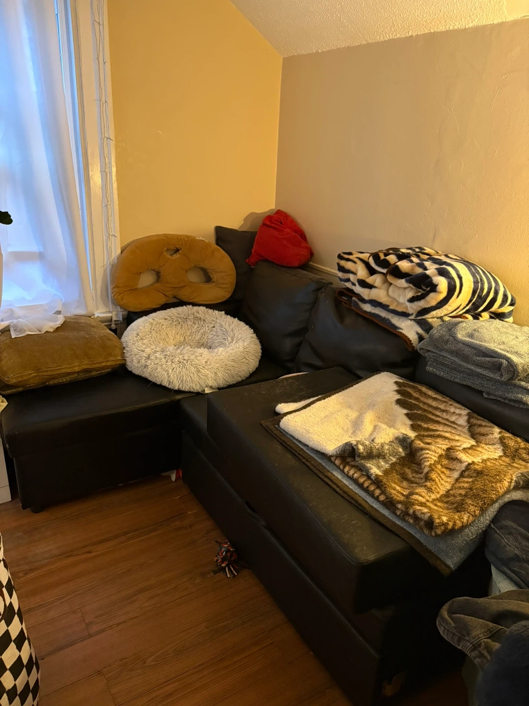 Selling a sectional couch it has some wear a tare as my dogs used it to sleep. The pieces don’t connect but are fine when pushed together. One side has storage and other can pull out into a small bed, which has barely been used. Free for anyone who can pick it up.