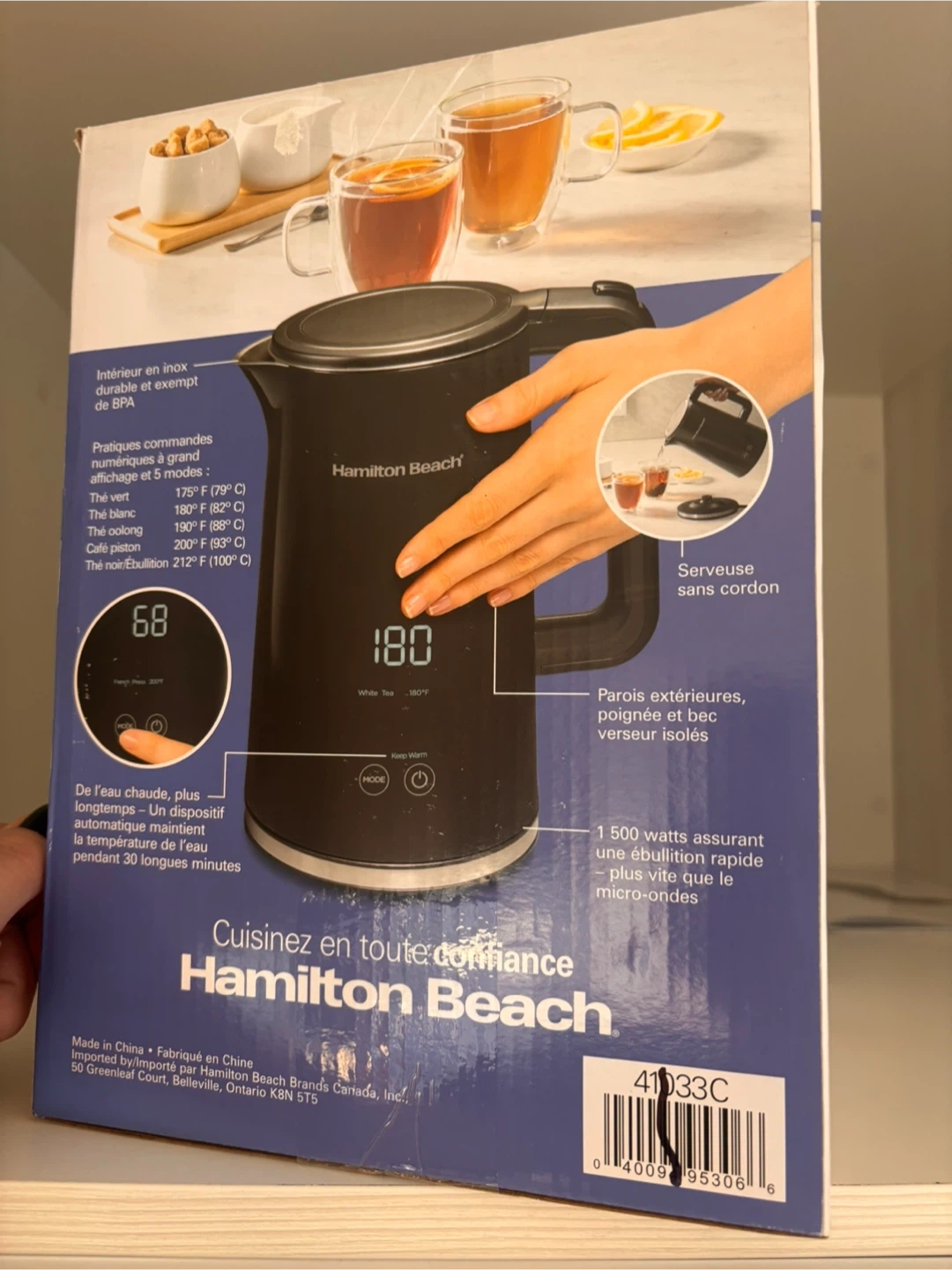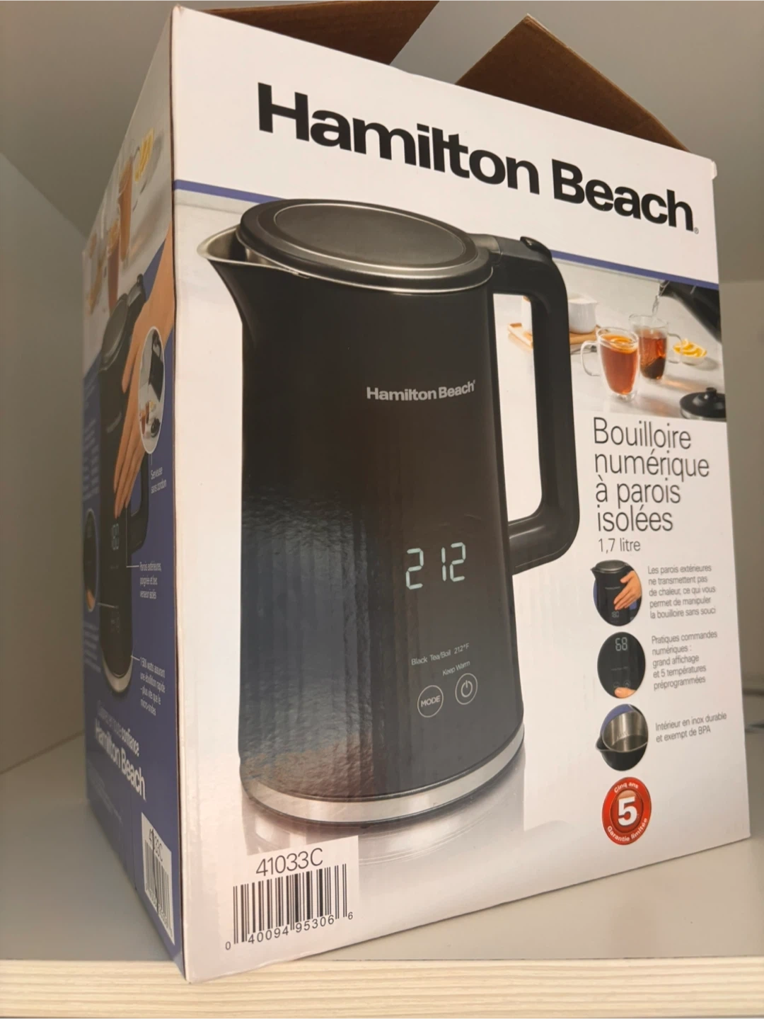 Selling a Hamilton Beach electric kettle! It's in like-new condition and ready to heat up your water quickly and efficiently. The kettle features digital controls and a large display. It has a 1.7 litre capacity and a stainless steel interior. Get boiling!