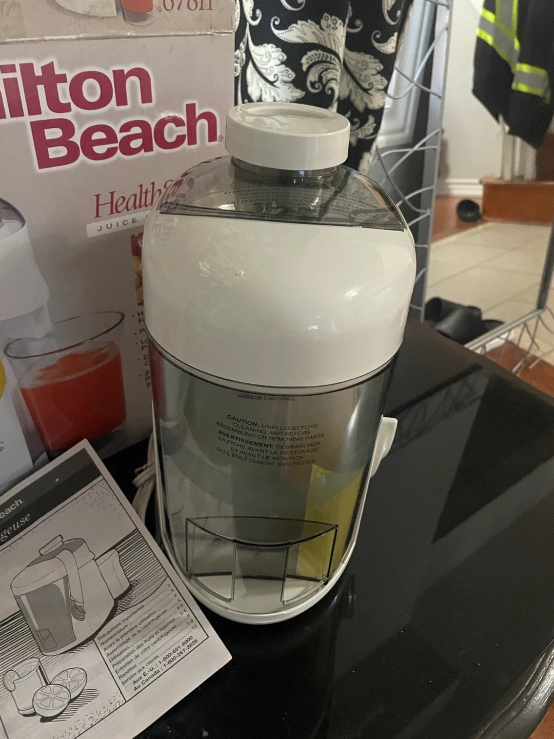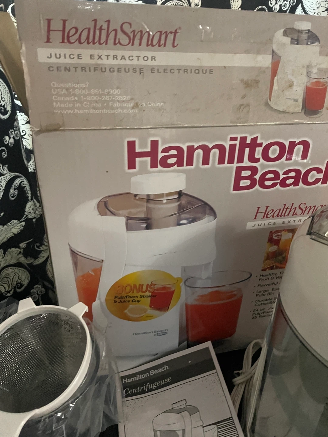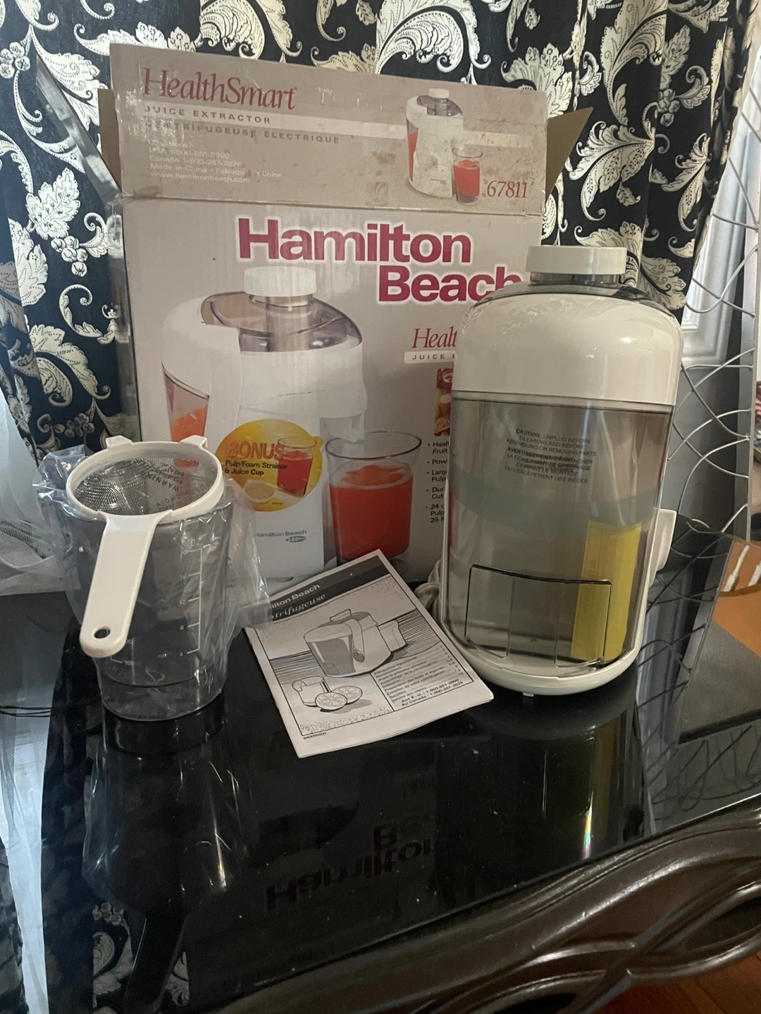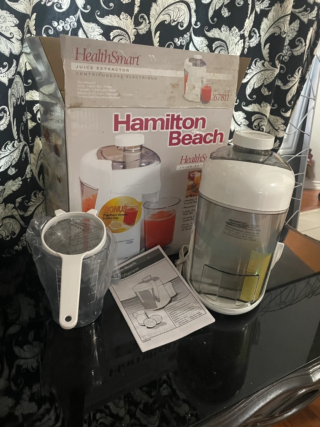 Selling a Hamilton Beach HealthSmart Juice Extractor. It comes with the box and all included components. It's perfect for making healthy fruit and vegetable juices at home! Includes a bonus pulp/foam strainer and juice cup