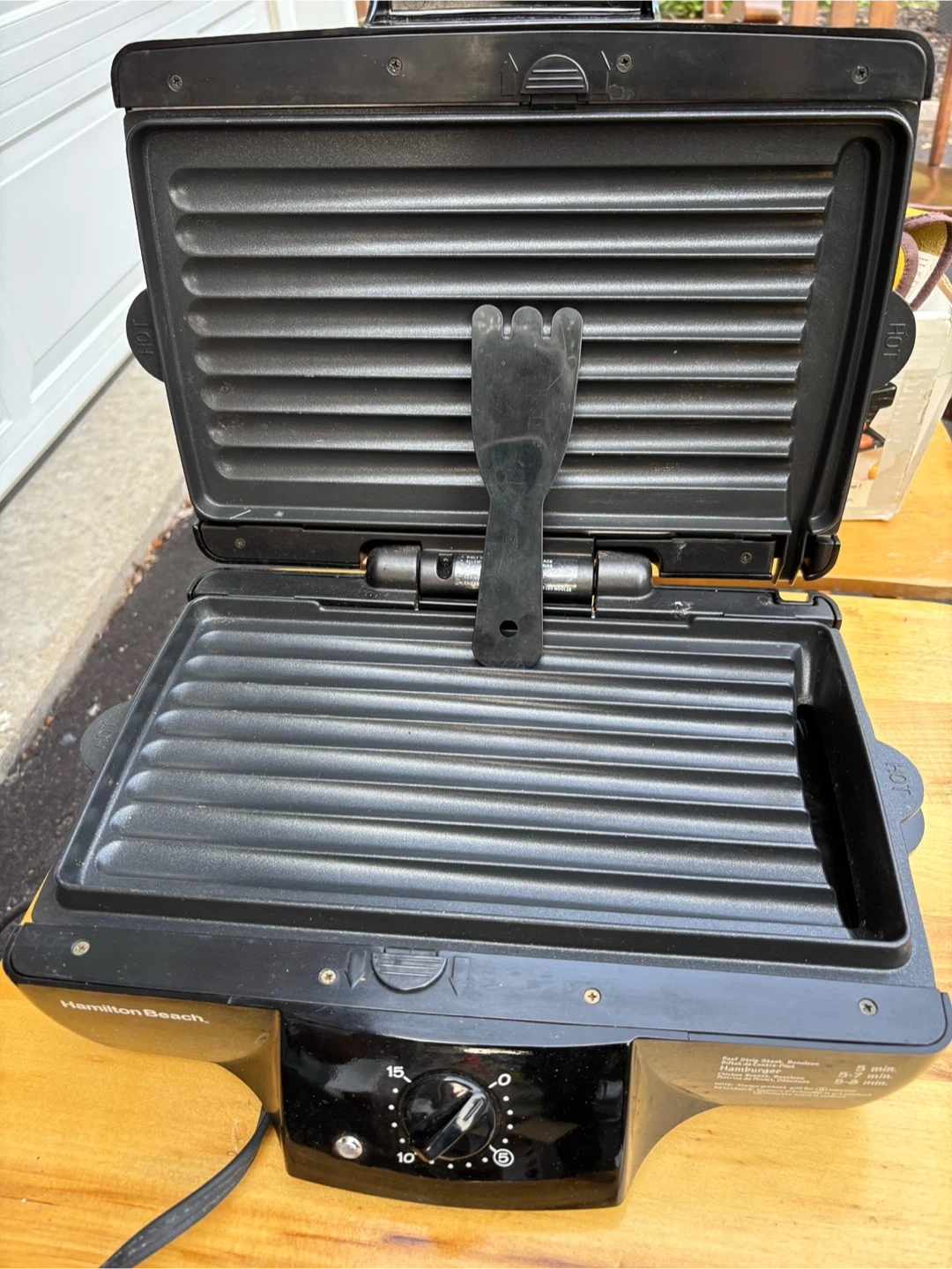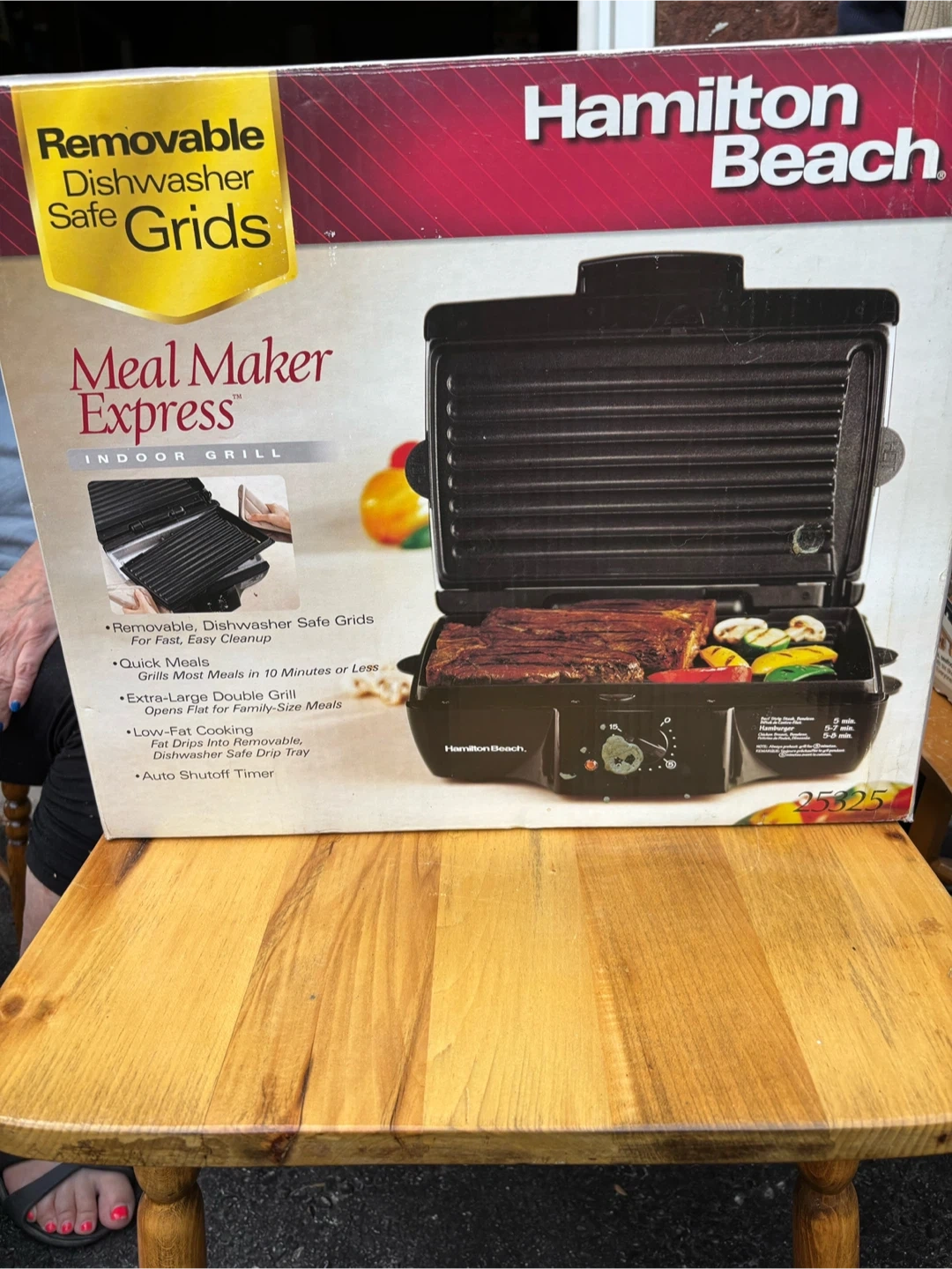 10I'm selling a Hamilton Beach Meal Maker Express indoor grill. It has removable dishwasher safe grids for easy cleanup. It's quick, making most meals in 10 minutes or less. The grill has an extra-large double grill surface and low-fat cooking with a drip tray. It also features an auto shutoff timer. Comes with the original box