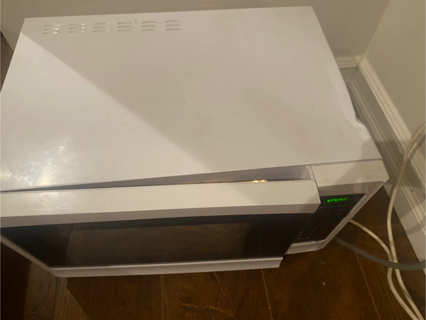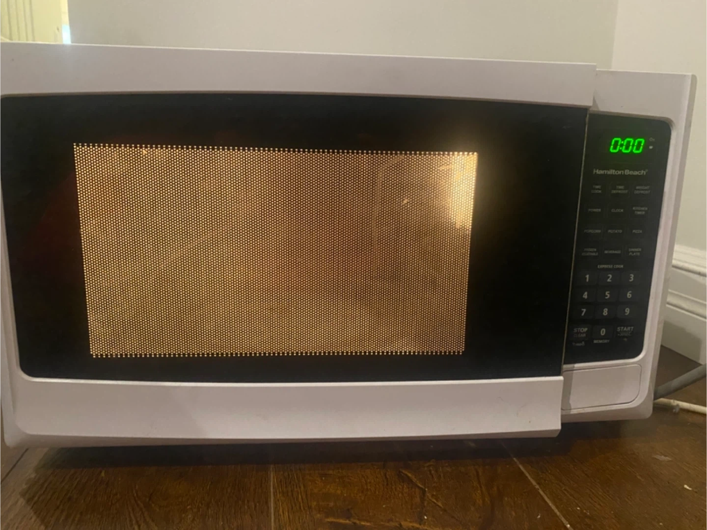 10Selling a used Hamilton Beach microwave. It's in good working condition and ready for a new home. Perfect for quick meals and reheating leftovers! Has a small dent during moving and bit rusty on the top but working perfectly and has no problem . I moving out so I want to sell it