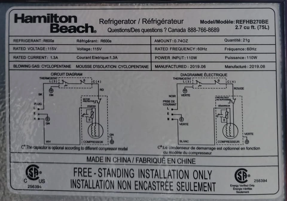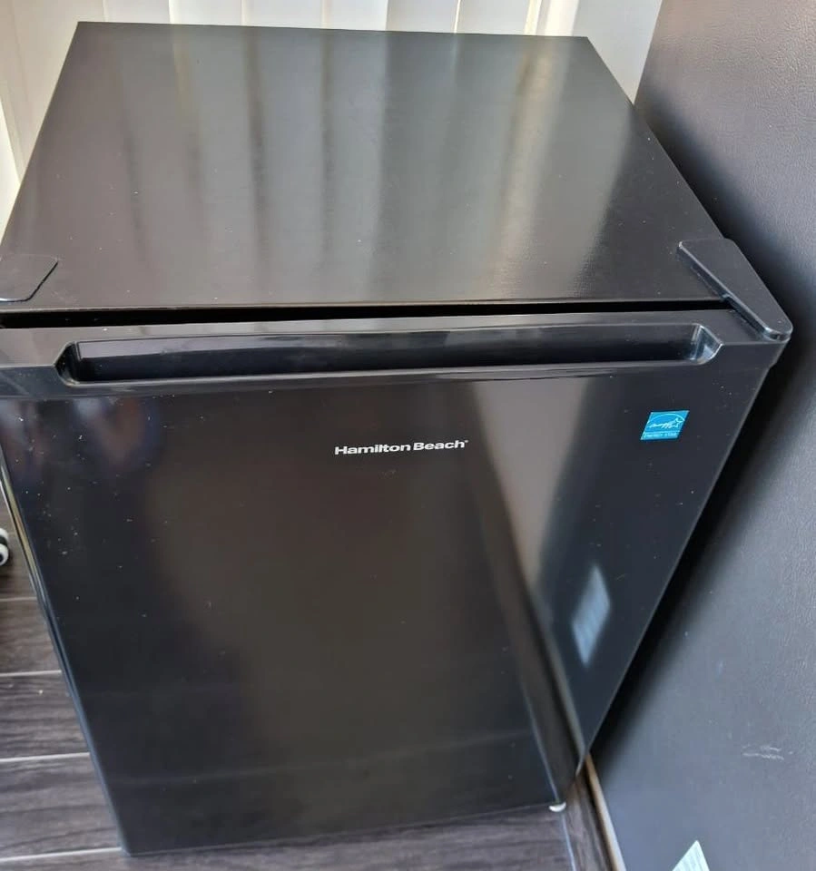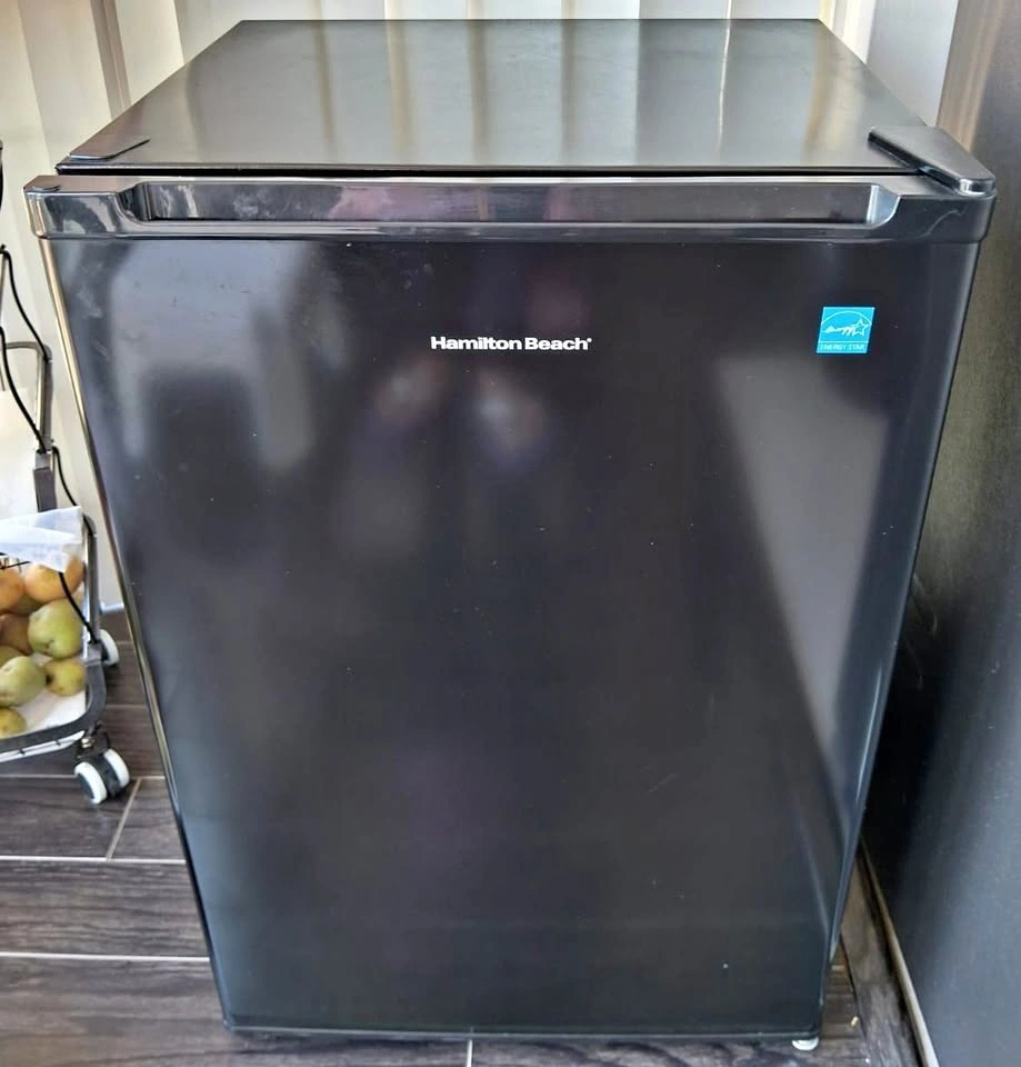 Selling a Hamilton Beach compact refrigerator (Model REFHB270BE) in excellent working condition. Perfect size for small spaces, with a sleek black finish and quiet operation. ✨ Features & Details: Capacity: 2.7 cu. ft. (75L) – ideal for drinks, snacks, fruits, and frozen items Freezer Compartment with manual temperature control Shelving: 2 removable/adjustable wire shelves + door racks for bottles/cans Energy Efficient & Quiet – low power consumption (110W) Compact Design: Great for apartments, dorms, offices, bedrooms, basements, or as a secondary fridge ⚙️ Technical Specs: Model: REFHB270BE Voltage: 115V | Frequency: 60Hz Current: 1.3A | Power Input: 110W Refrigerant: R600a, 0.74oz (21g) Manufactured: June 2019 Free-standing installation only 📏 Approximate Dimensions: Height ~33 in | Width ~19 in | Depth ~20 in ✅ Condition: Very clean, gently used, ready to use immediately