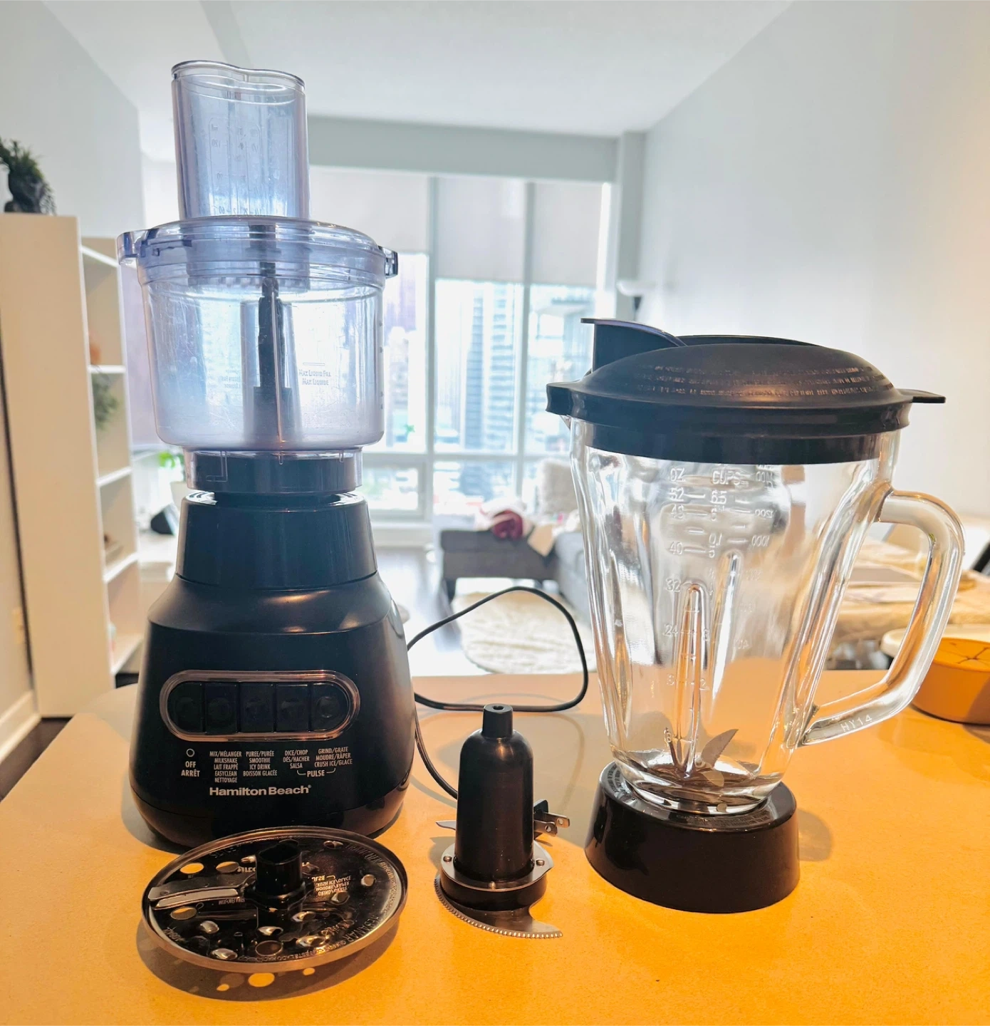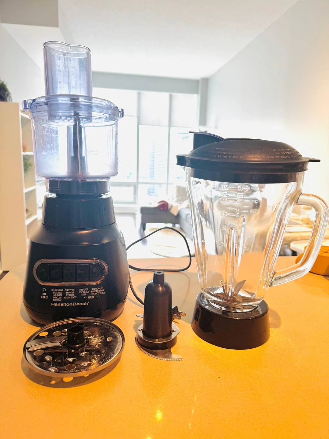 This functions as a 3-in-1 appliance: a traditional blender, a food processor, and a personal blender. Barely used , Glass Jar, 3-1 food processor .
