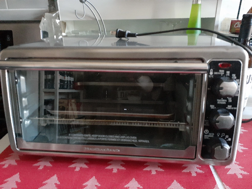 Excellent Condition, very clean. Toast Broil Bake Functions On Off Indicator Light Timer with auto shutoff Triple rack positions Toasts 6 Slices of Bread Can fit a 12 Inch Pizza Broil Pan, Rack, Crumb Tray included. price firm. pet and smoke free home.