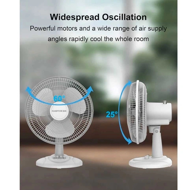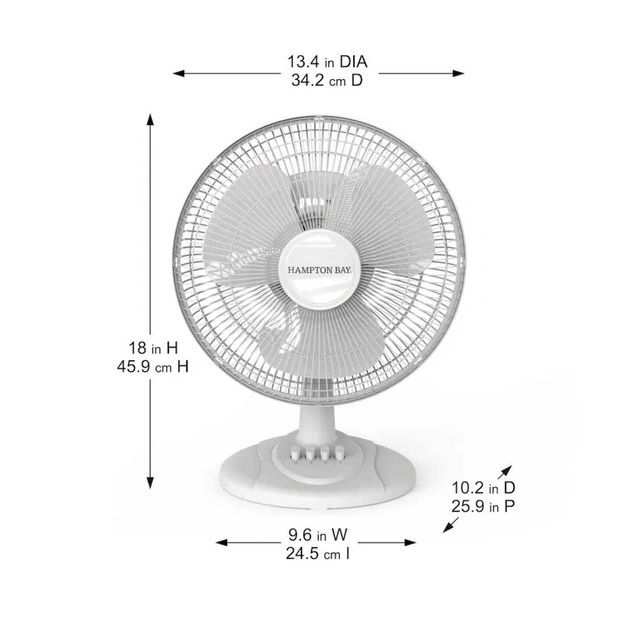 18Keep cool with this Hampton Bay oscillating table fan, perfect for any room! This fan has been gently and lovingly and has 3 speed settings to customize your comfort. Specifications: * Brand: Hampton Bay * Type: Table Fan * Features: Oscillation, 3 Speed Settings This fan is ready to whisk away the heat and bring a refreshing breeze into your life.