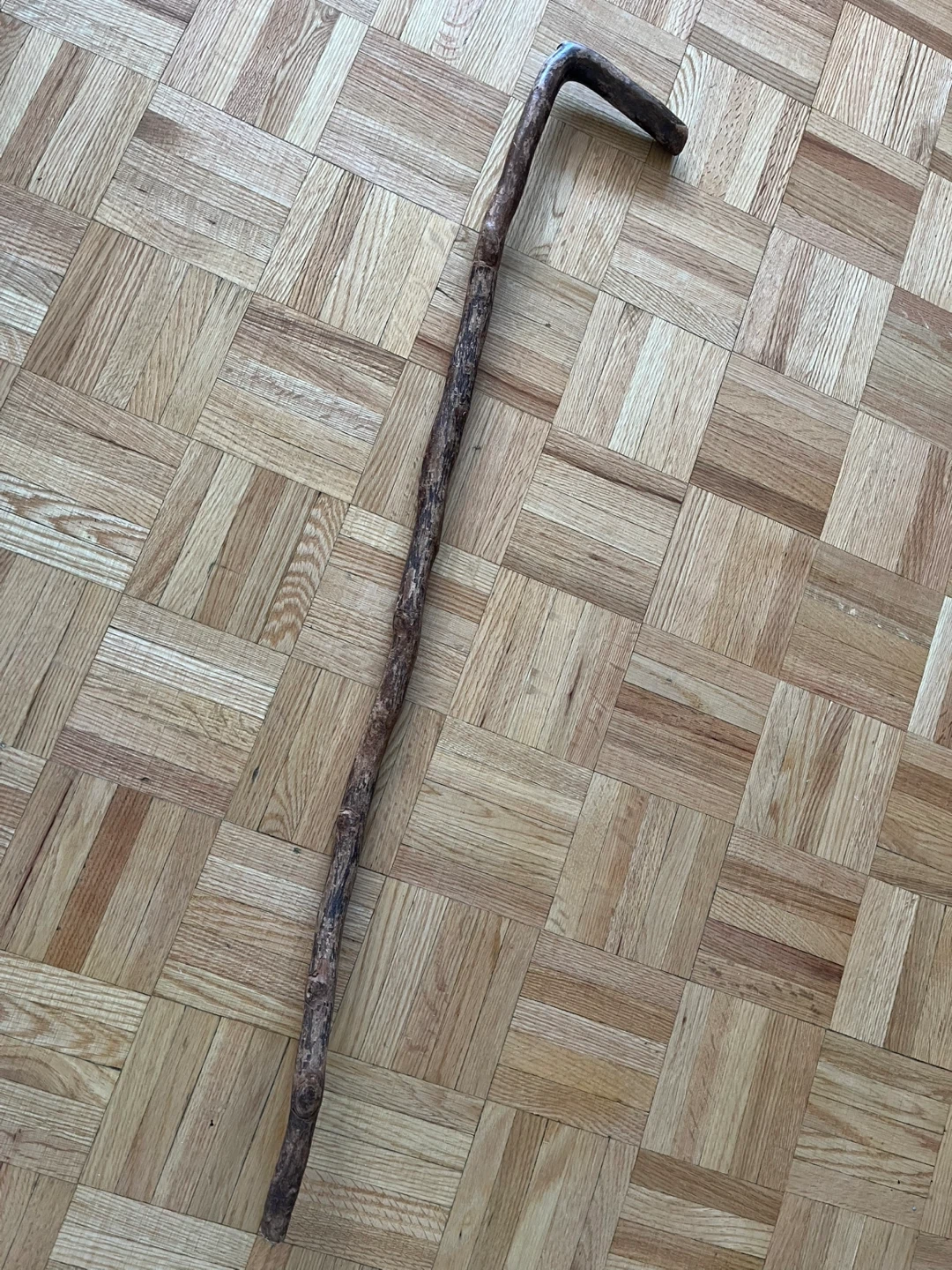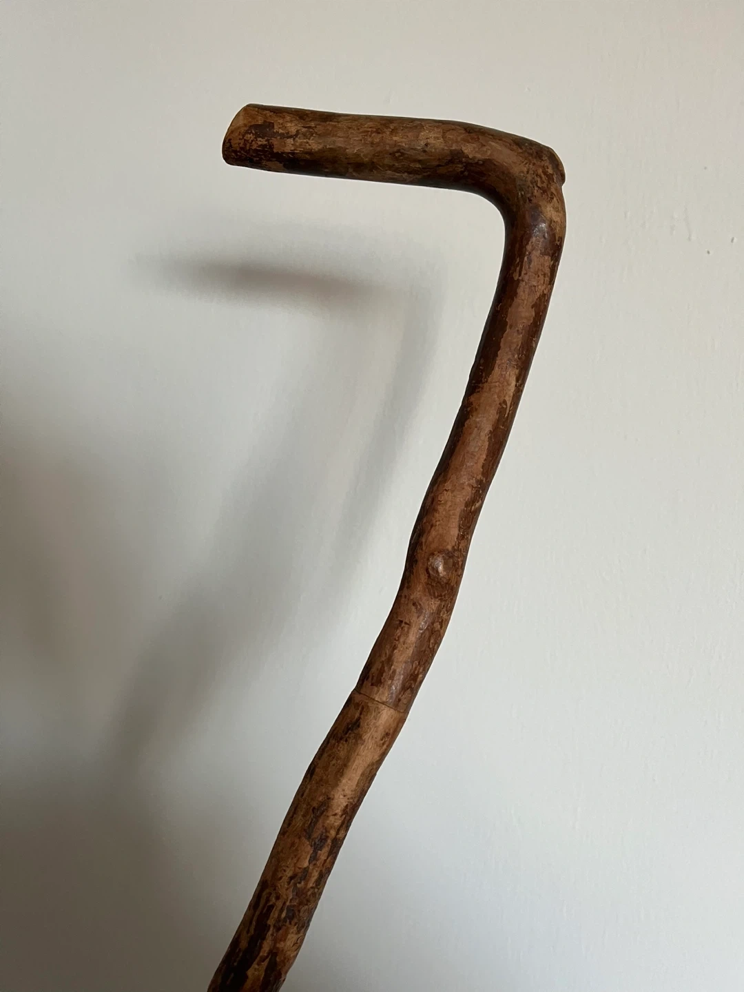 439Here's a unique, hand-carved walking stick! It's got a rustic look and feel, perfect for adding a bit of character to your walks. It's sturdy and ready to go! 87cm long