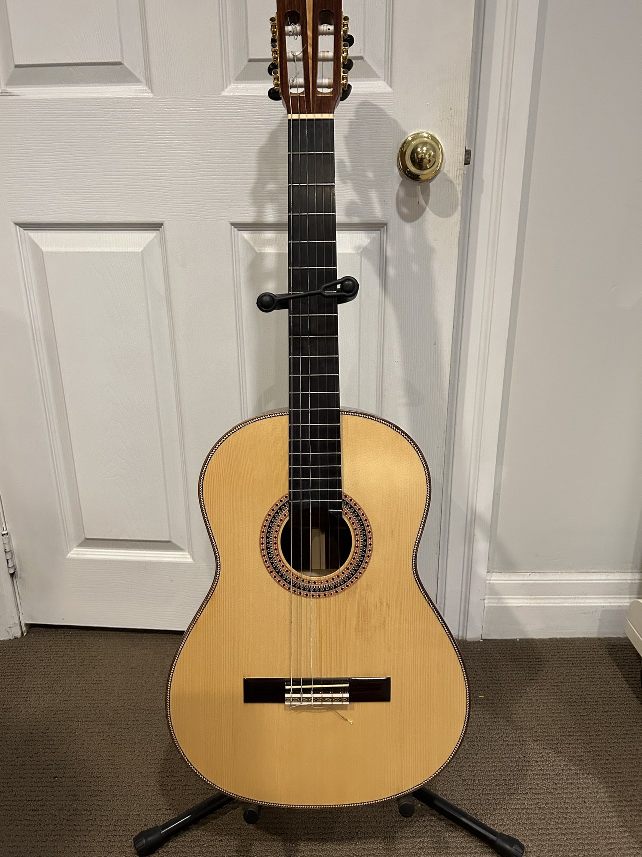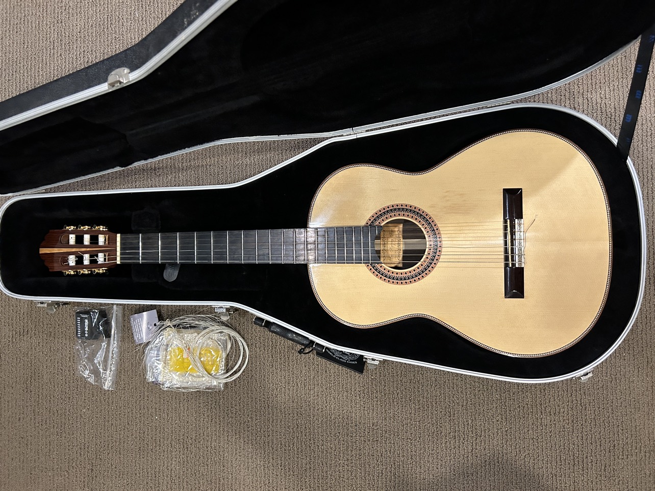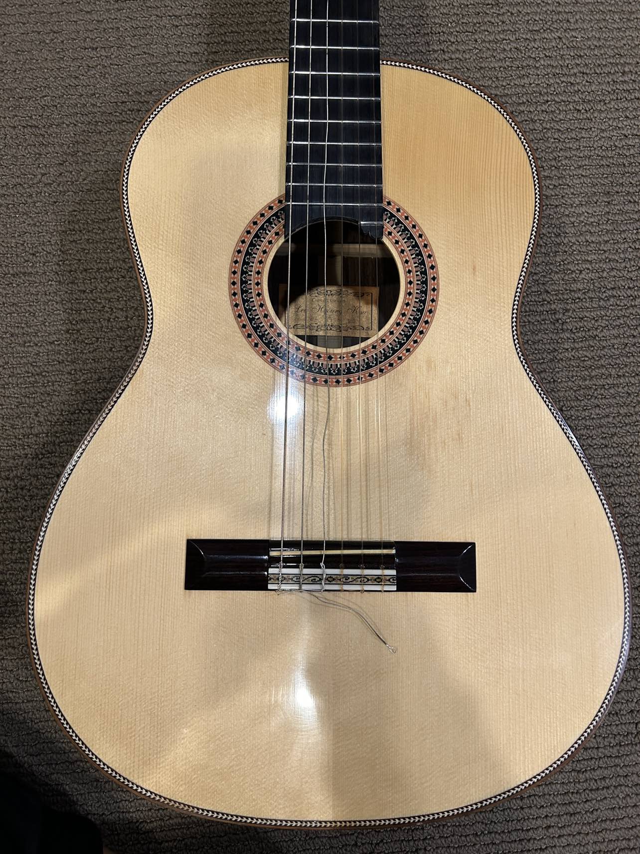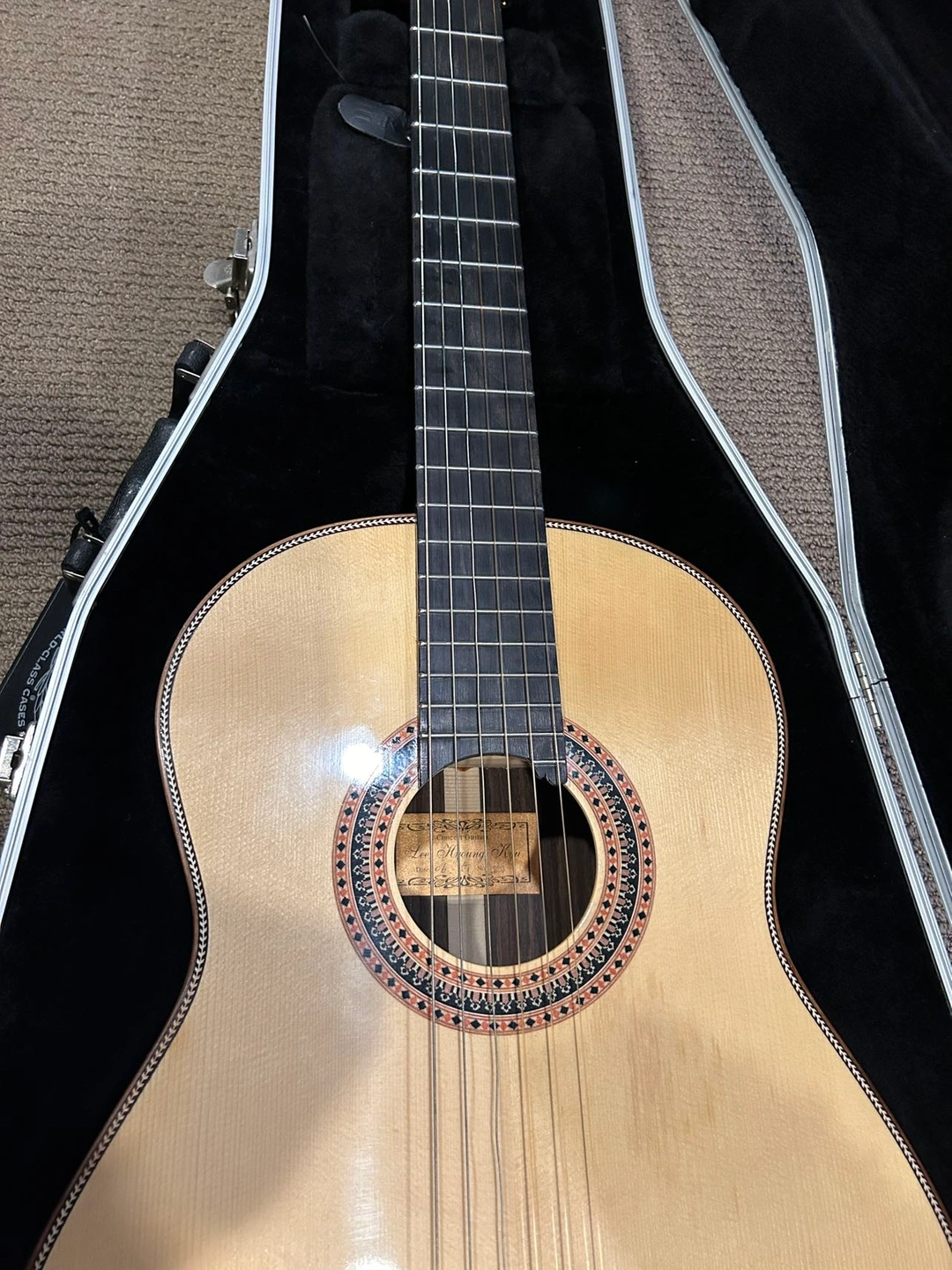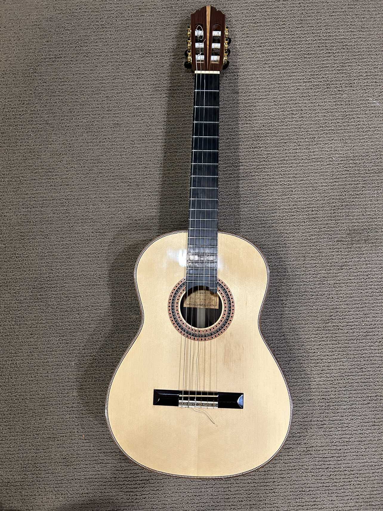 21Hand made classic guitar Made by ‘ Hyoung kyu Lee’ Made in Korea. Professional. High quality. For student preparing for their major. Used : never used it Exellent condition Almost new new new Original price : 3,000$ Listing Price : 990$ Sounds : deep and elegant Pick up only