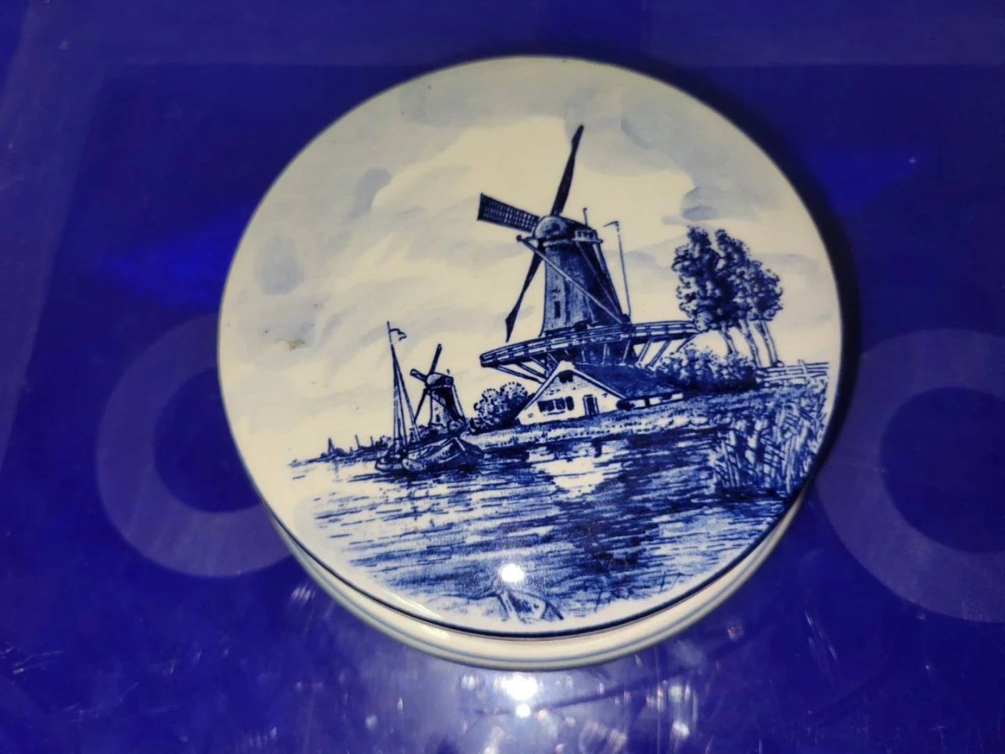 17Selling a hand painted Delft Holland trinket box. It features a lovely windmill scene on the lid. Perfect for storing small treasures!