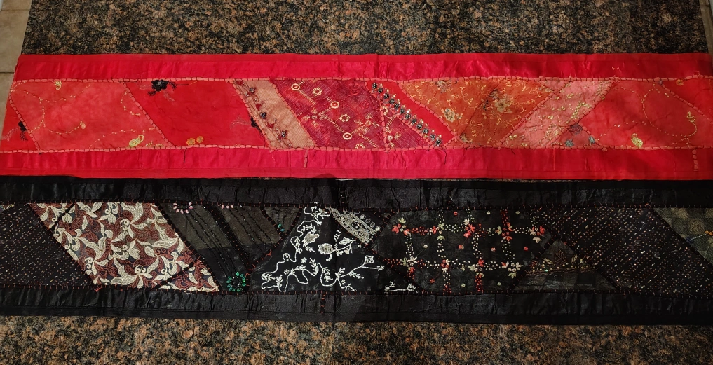 29Add a touch of artistry and elegance to your home with these stunning hand-stitched table runners. Each piece is a unique blend of rich textures and vibrant colors — one in radiant red and gold tones, the other in classic black with intricate embroidery. Meticulously crafted with traditional hand embroidery and patchwork detailing, these runners bring warmth, culture, and sophistication to any table setting. 24$ each