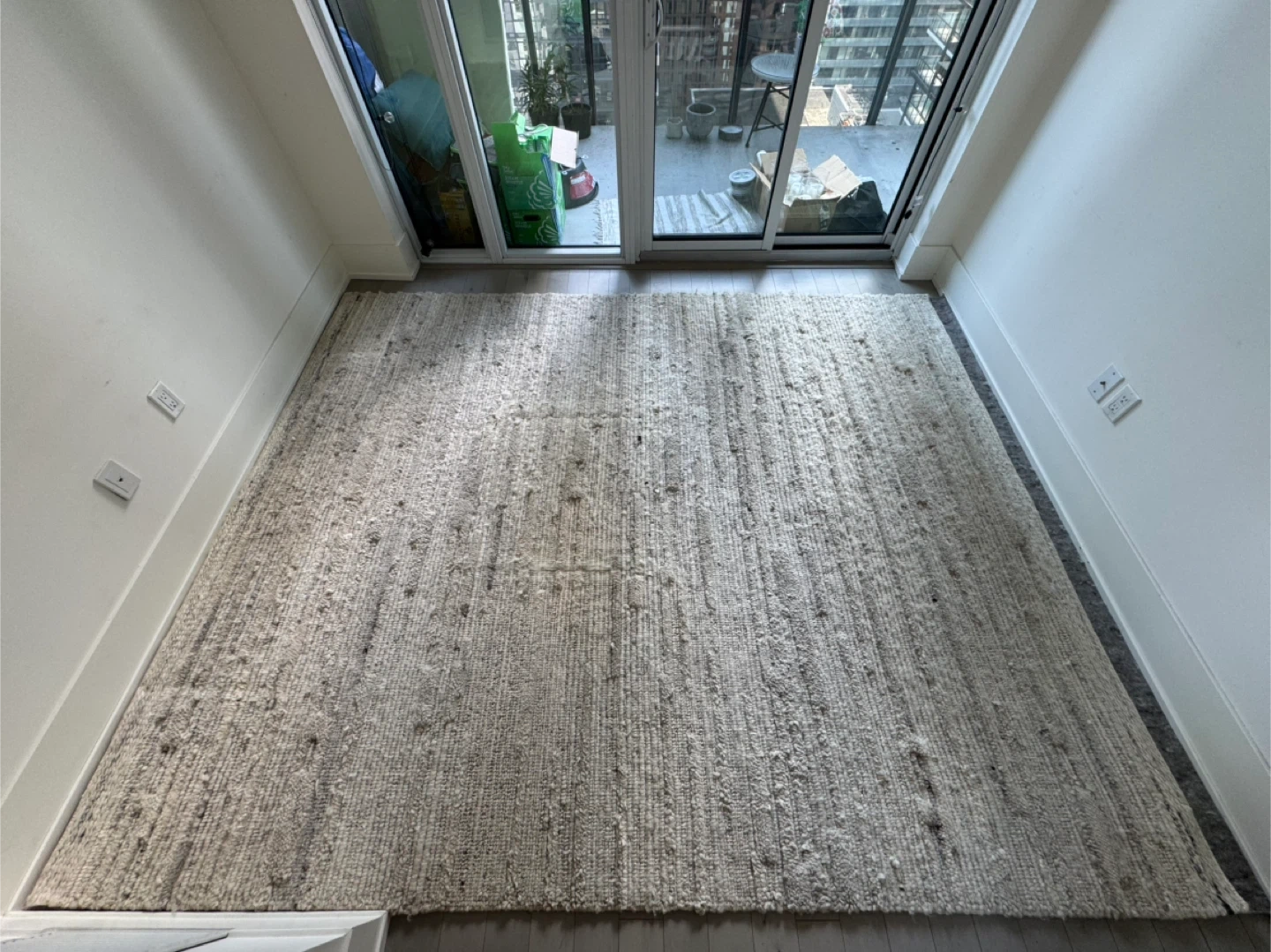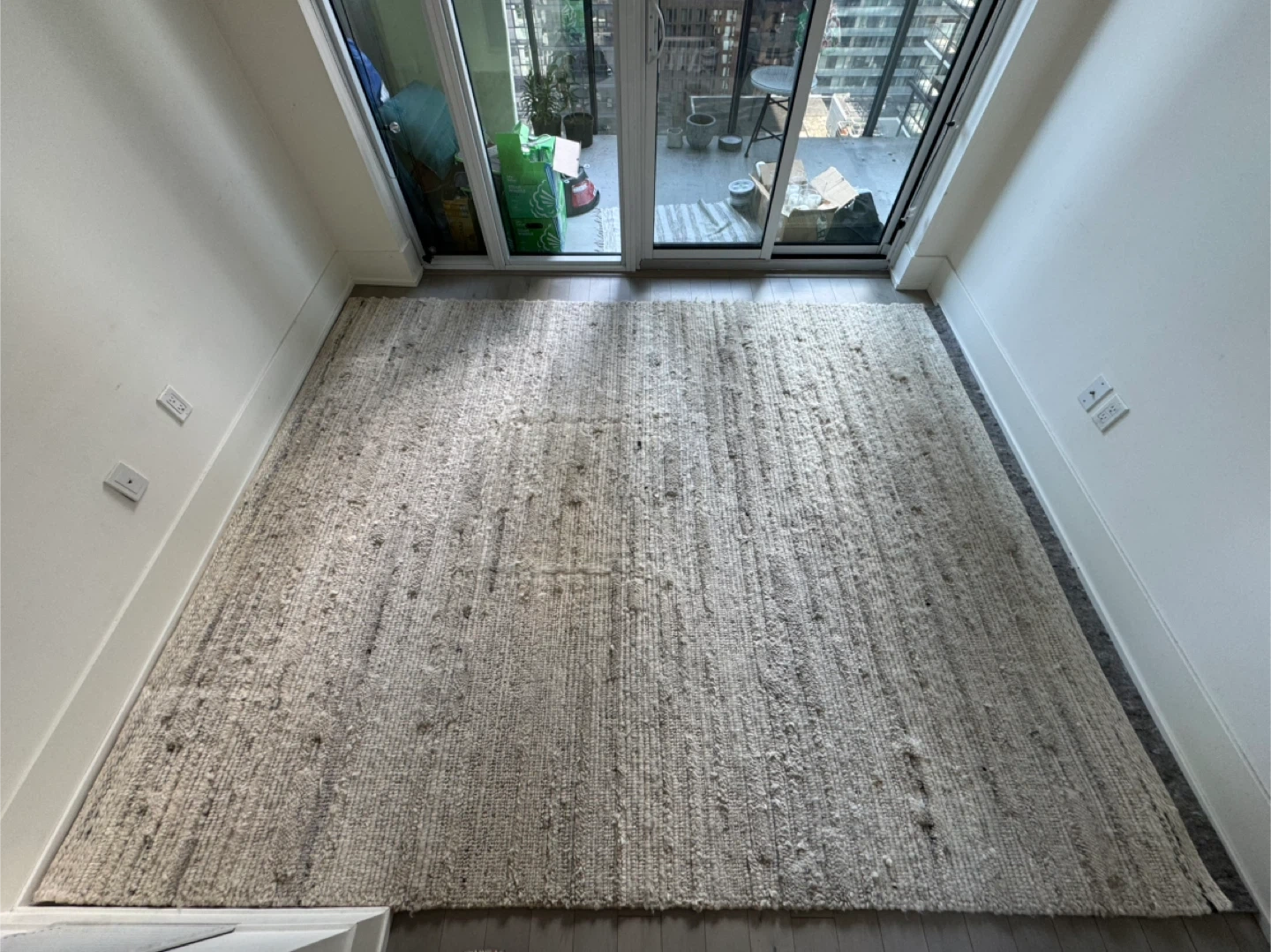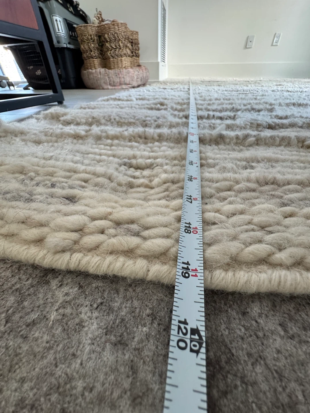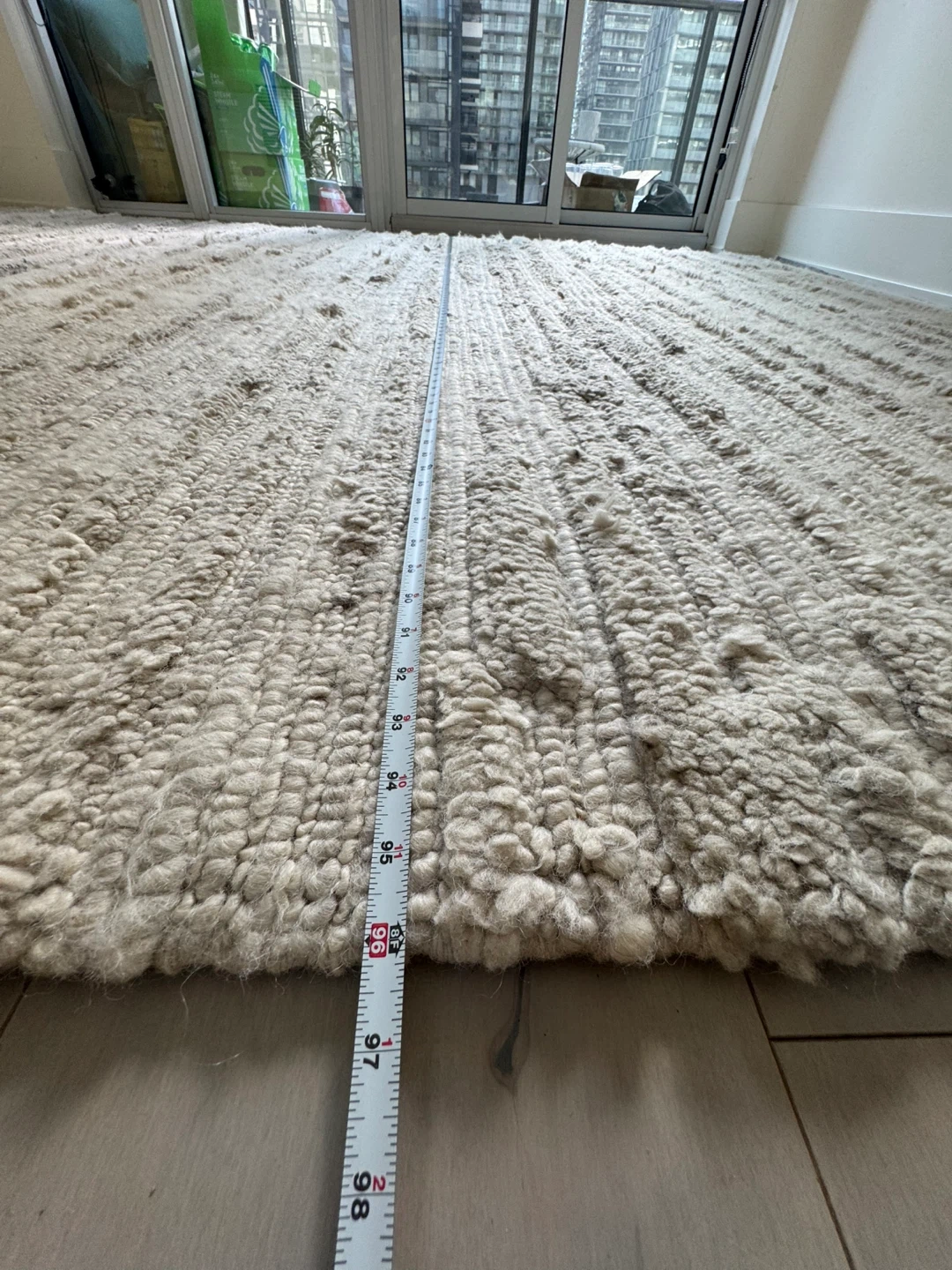 Selling a Matayum Wool Area Rug from Boutique Rugs. It’s 8’ x 10’ handmade wool rug. Backside of the rug pictured for your review. It is 3/4 inch thick. Comes with the under felt.