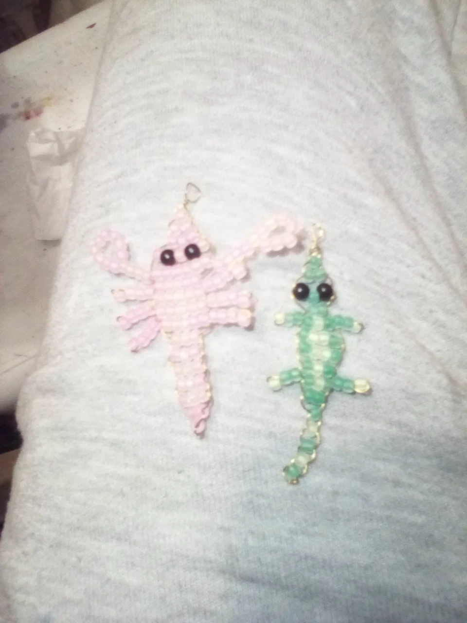 105Selling a collection of handmade beaded animal charms! These are great for adding a unique touch to your bags, keys, or even as fun little decorations. Each one is carefully crafted with small beads and wire. They come in different animal shapes like lobsters and lizards. Perfect for anyone who loves quirky and colourful accessories! message me what animal you want and color and I can make it for you .