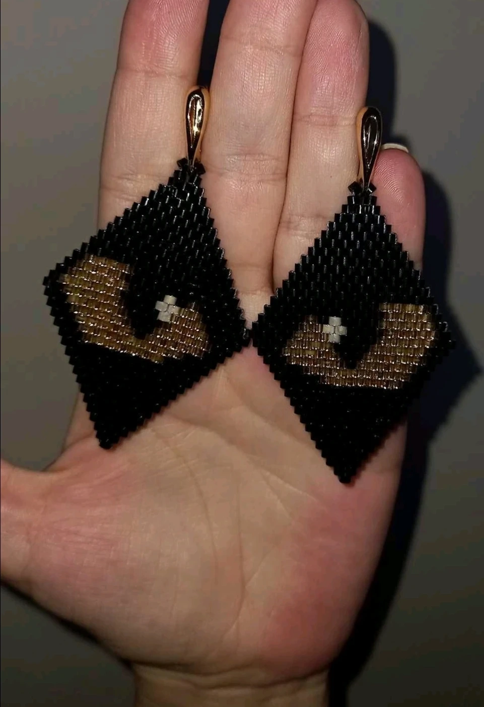 18K gold plated earrings ✨️ Selling a pair of unique, handmade beaded earrings. They feature a striking black and gold design. These earrings are sure to add a touch of artistry to any outfit!