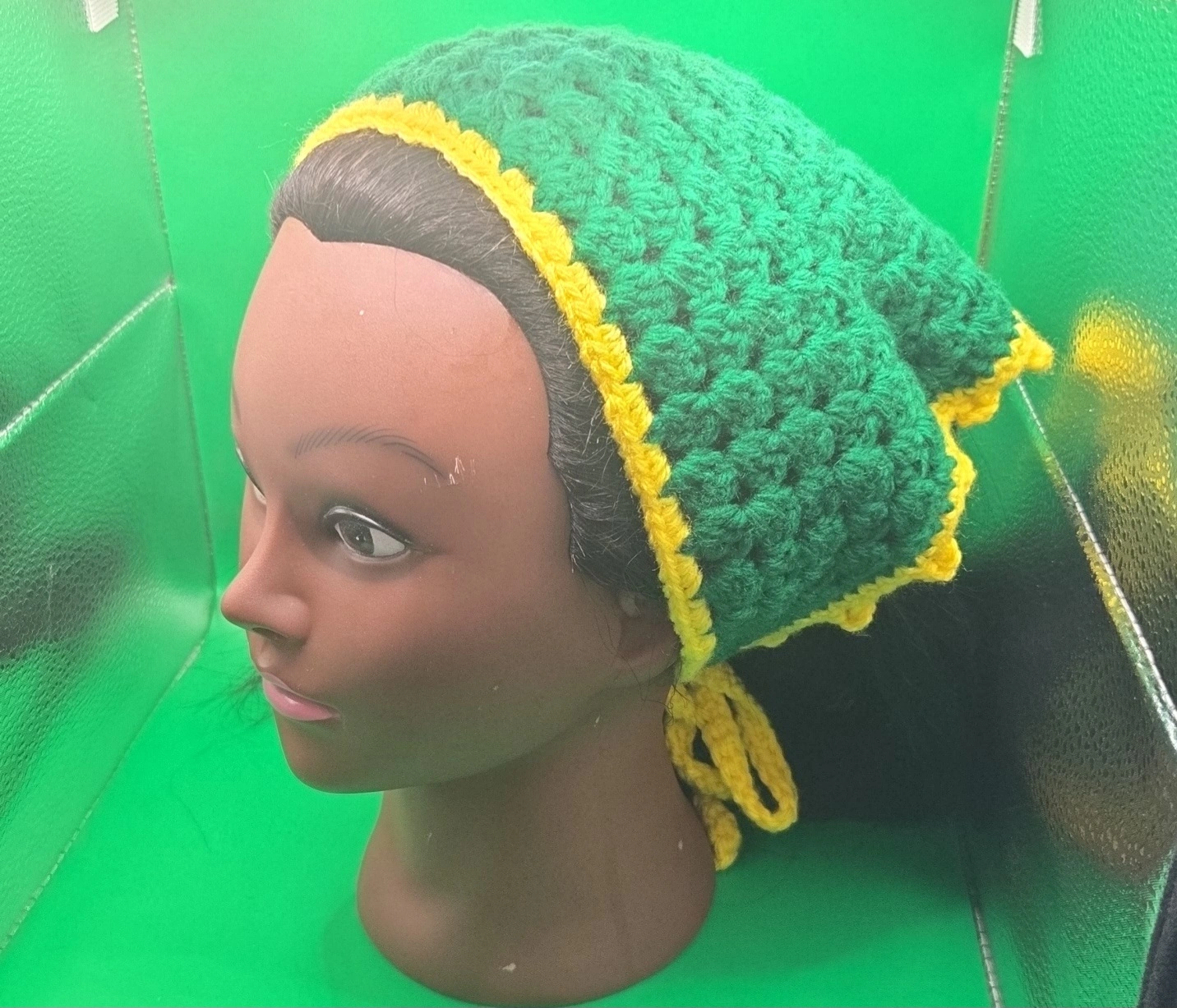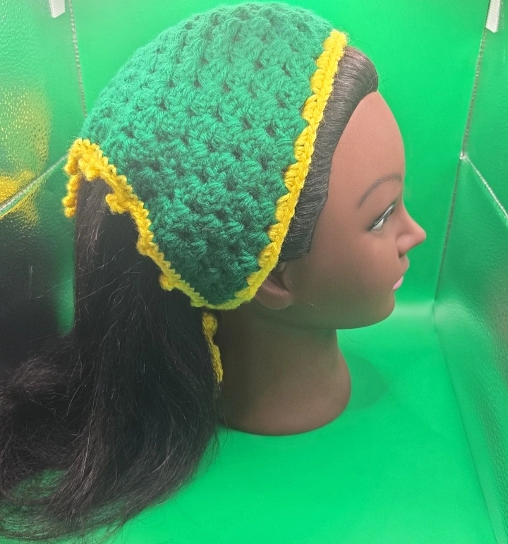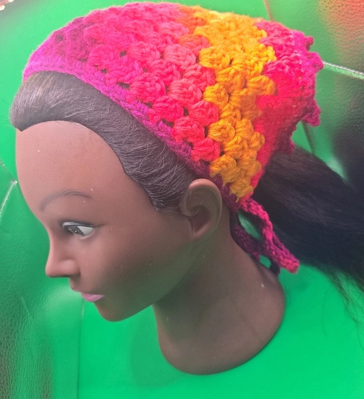 Here's a cute, handmade crochet bandana headband! It's perfect for keeping your hair out of your face in style. The different colours and patterns make each one unique and fun
