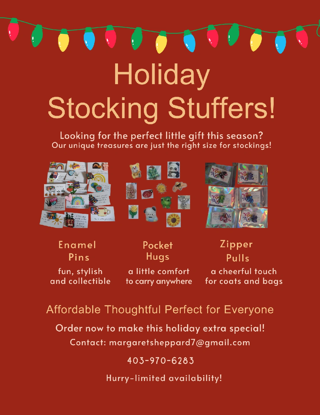 Looking for the perfect little stocking stuffer? These unique treasures are just the right size! I have a selection of handmade enamel pins (fun, stylish, and collectible), pocket hugs (a little comfort to carry anywhere), and zipper pulls (a cheerful touch for coats and bags). l also have many keychains that are New. l have Keychains for Young and Old and themed. These ltems are also Great for Party Favors, Gift Bags or Gift Baskets. Pocket Hugs can be a Cute addition to that Greeting Card. Affordable, thoughtful, and perfect for everyone!