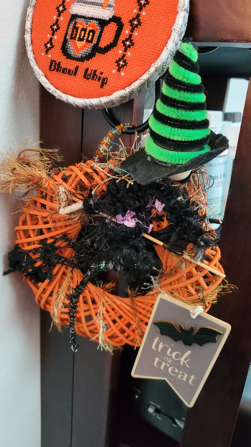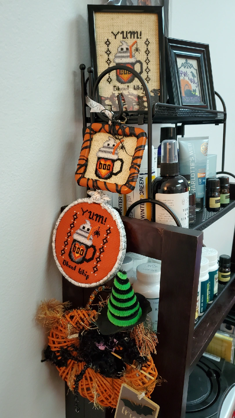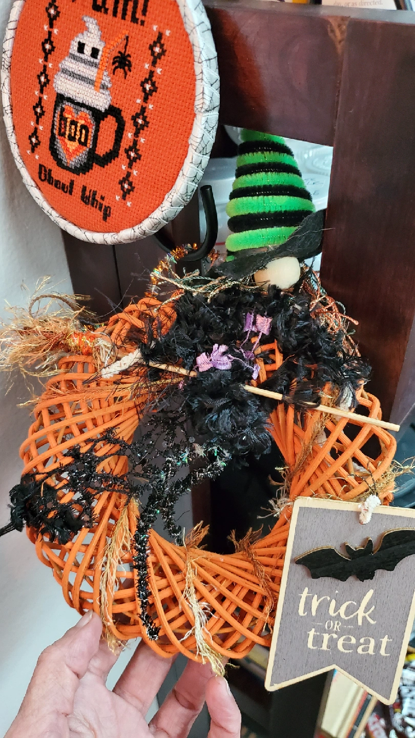 60one of a kind handmade Halloween small Witch wreath 10.00 small framed potions cat 10.00 tall Halloween Cake 45 ghoul whip framed or in the hoop 15.00 small ghoul in ornament frame wrapped in black 10.00 I can also meet you in wheaton/ Winfield area.