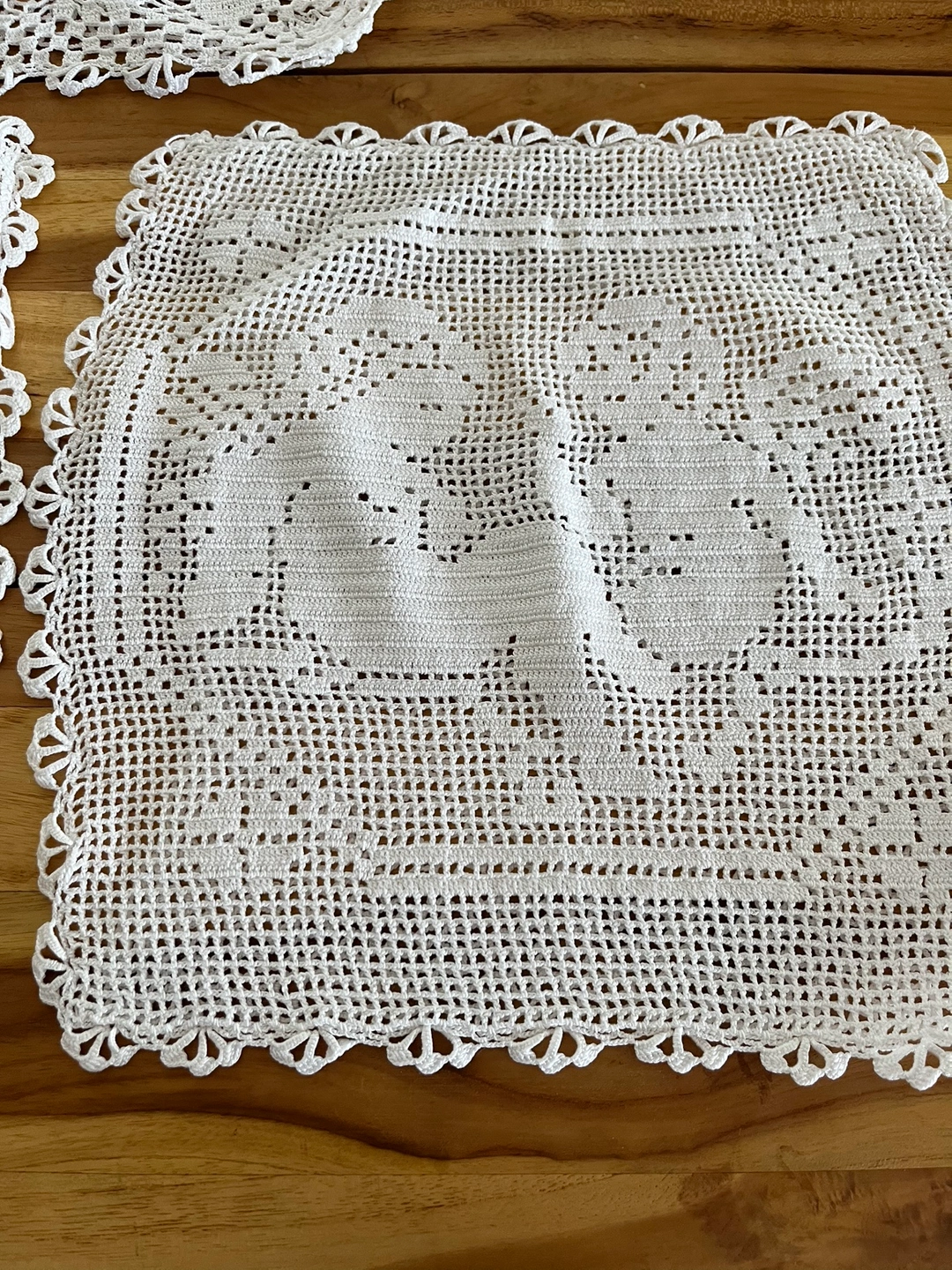 103 Handmade lace cushion covers Size: 30cm x 30cm Price: $40 each