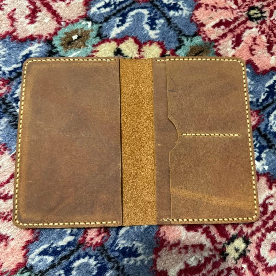 Handmade and leather passport cover. Each $18. If you buy two, it's $30