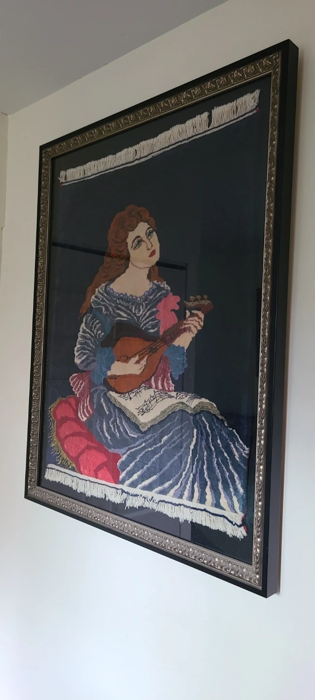 455Persian handmade rug with frame and glass $500 Size 38.5" ×30.5"