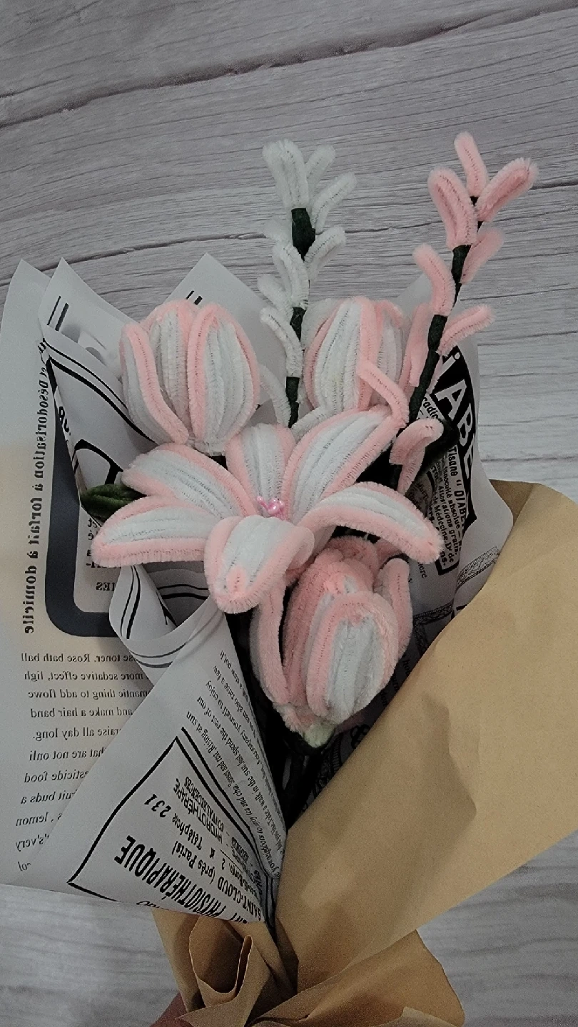 15Selling a cute handmade flower bouquet made from pink and white pipe cleaners! It's a unique and charming piece, perfect for adding a touch of whimsy to any room.
