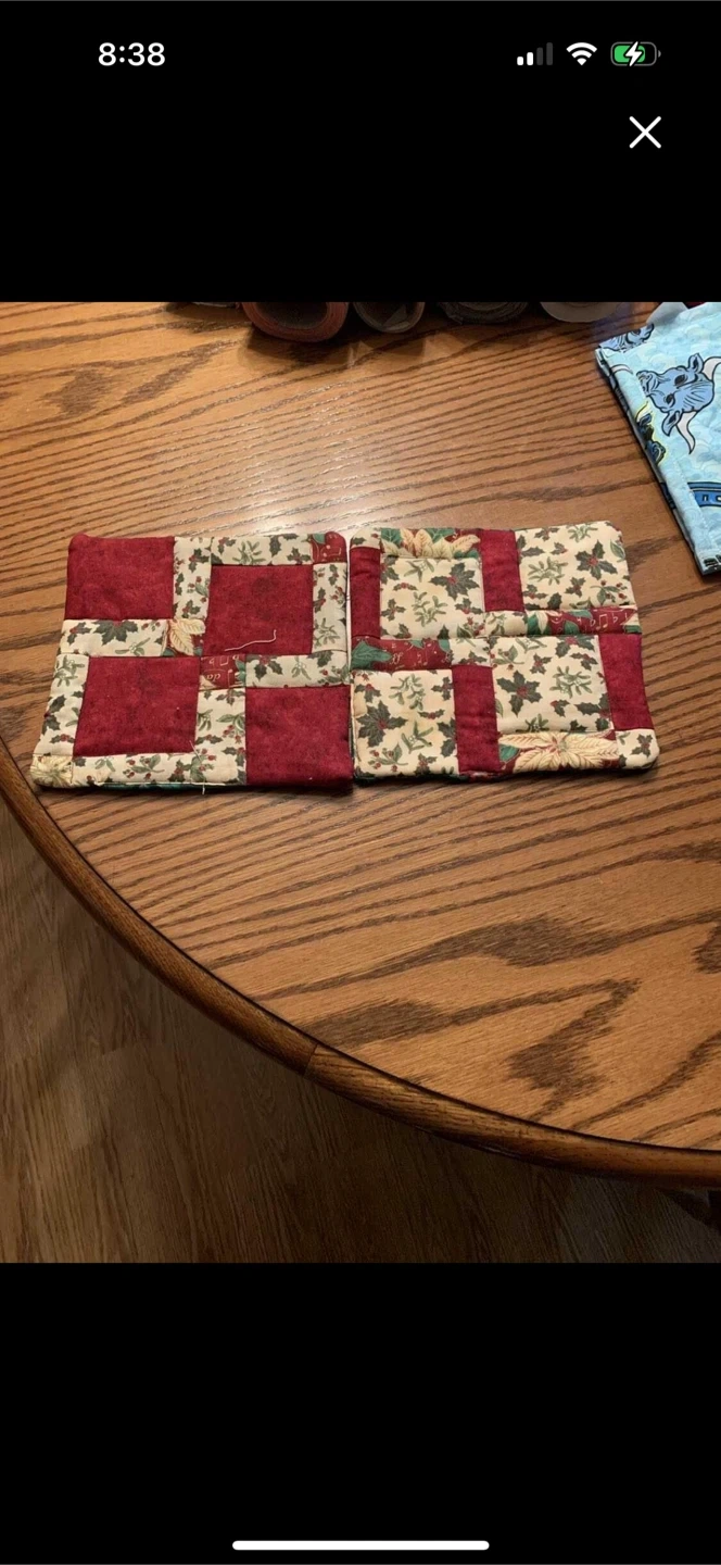 Selling a set of two handmade quilted potholders. They feature a charming patchwork design with red and floral patterns. Perfect for adding a cozy touch to your kitchen! Cross posted Pick up in Steinbach Pet bug smoke free home