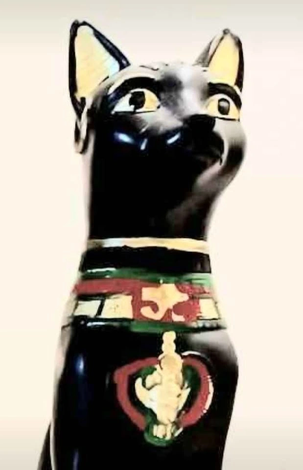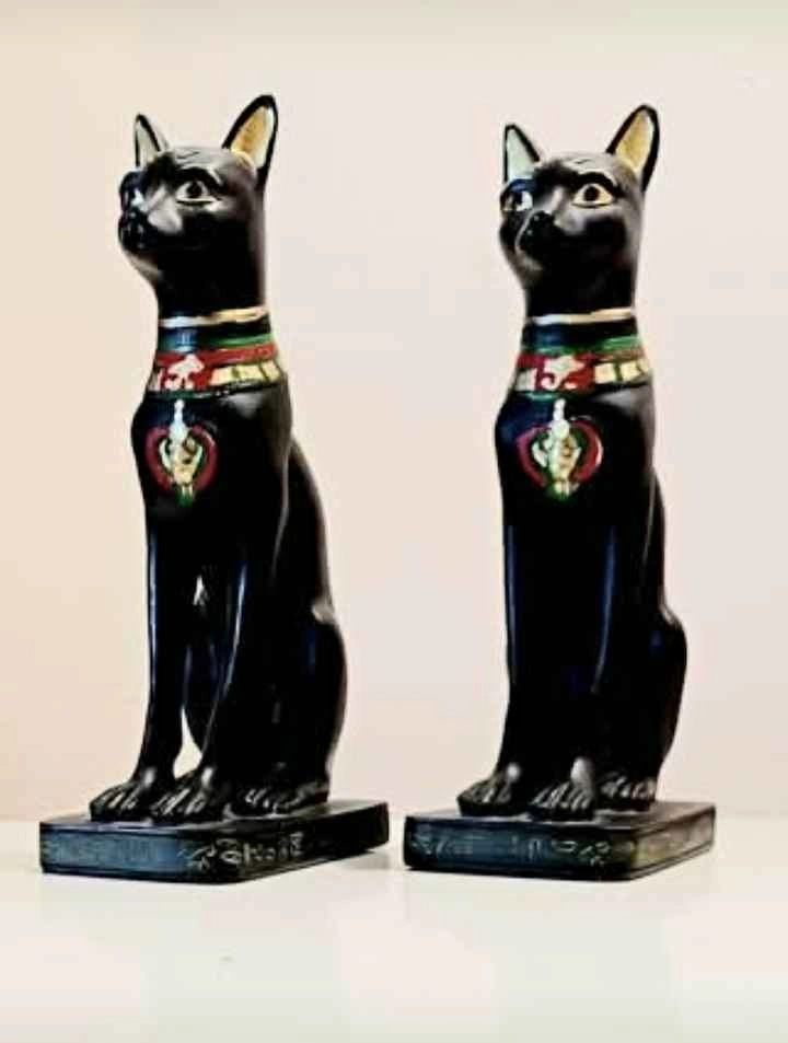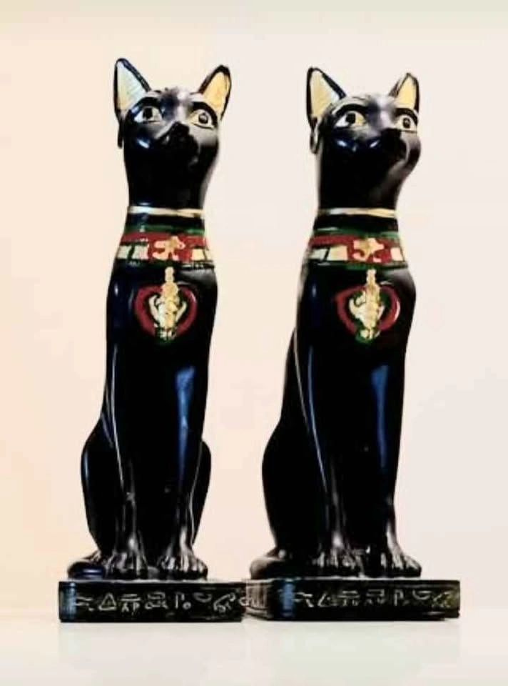 65Vintage, Rare, Royal Bastet Egyptian Cat Handmade & Handpainted Resin Statue goddess of home, joy, protection, women, children, cats, sunrise, music, dance, pleasure, family, fertility, and birth. Pharaonic Calligraphy Crafted from high-quality materials like polymer resin or black resin Handmade in Egypt, particularly in Luxor. Height : 20 cm - 8 inches Decorative, Household Very Good Condition Please check out my other rare collectibles!