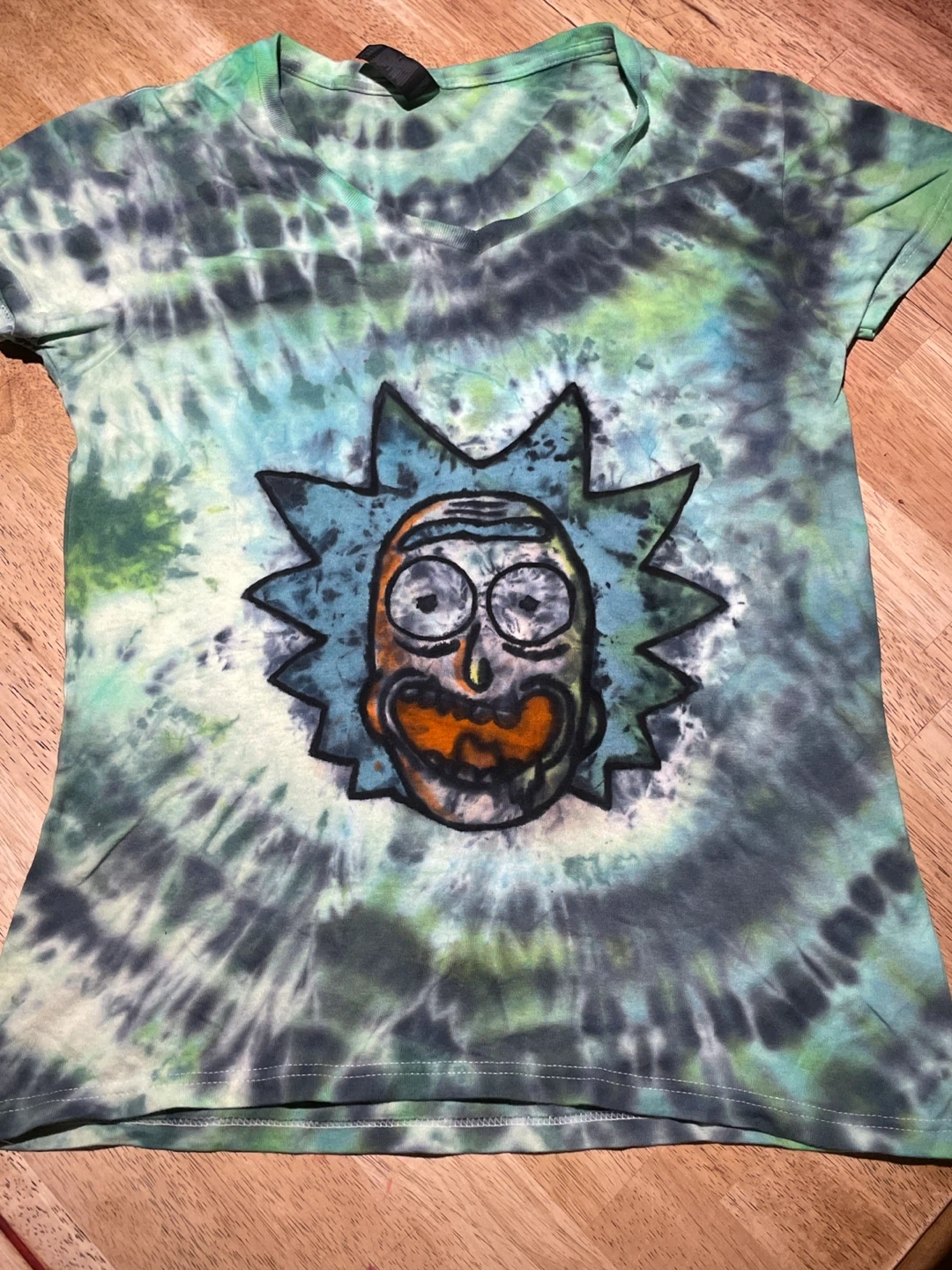 Handmade Tie Dye Rick and Morty T, Women's M size