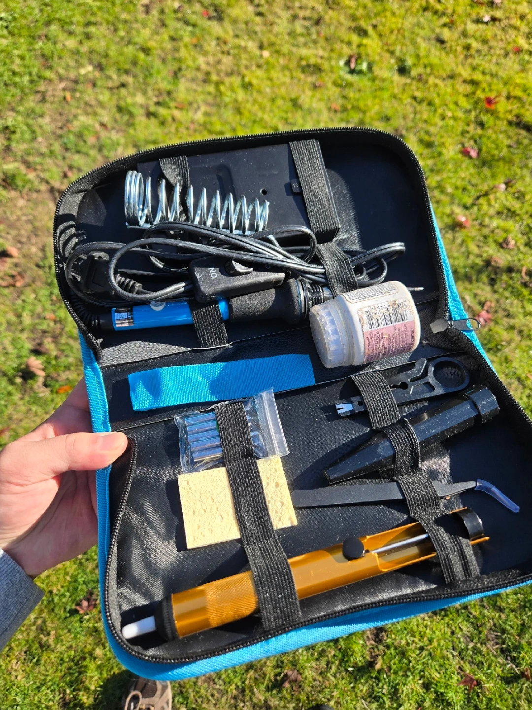 10This is a HANDSKIT soldering iron kit that comes with a case. It includes various components and accessories for soldering tasks. Perfect for DIY projects and electronics work!