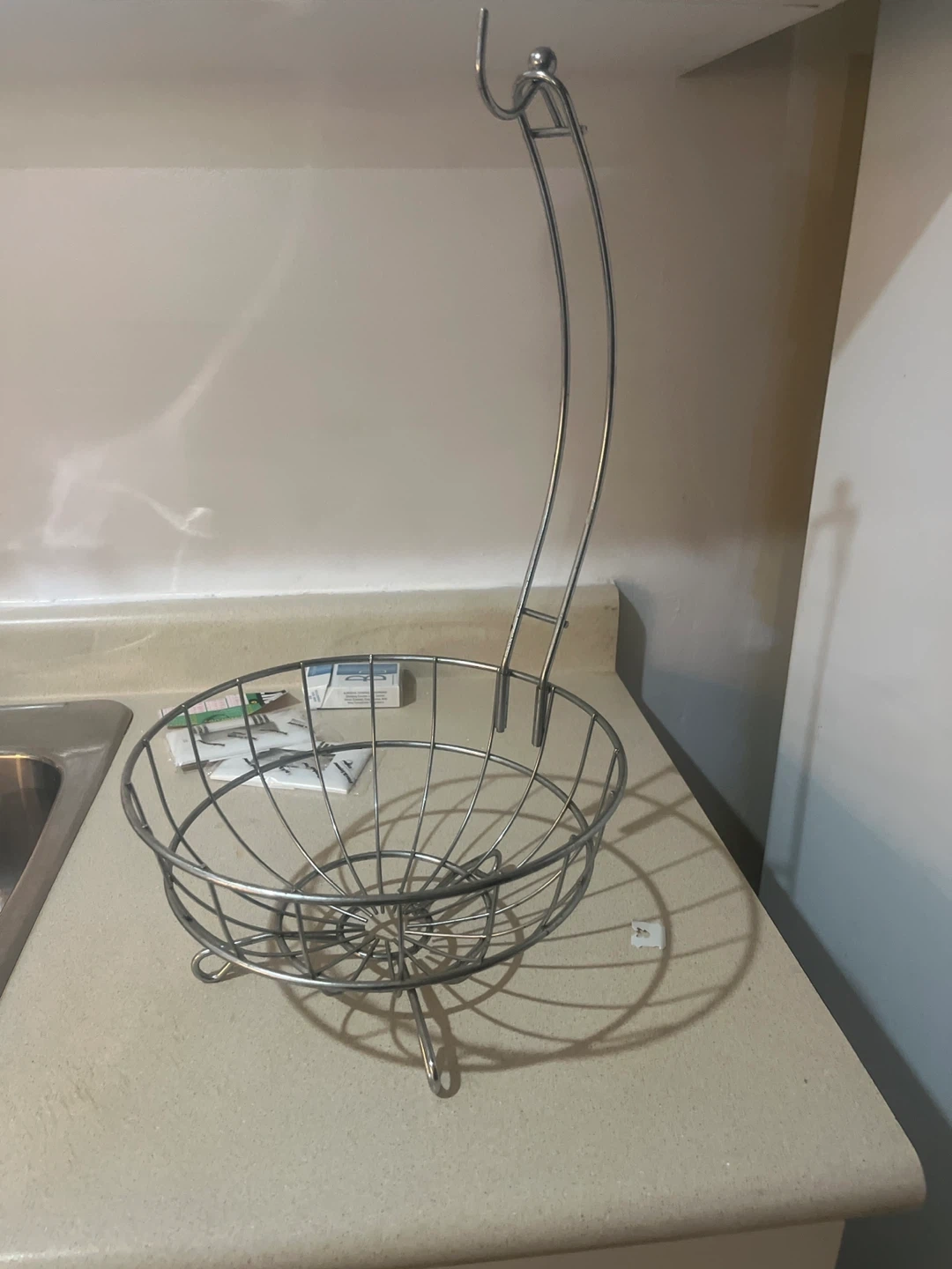 65Selling a chrome hanging fruit basket. It's in great shape and perfect for keeping your fruit fresh and organized on the countertop. The design is stylish and functional, adding a touch of elegance to your kitchen. It's a great way to save space and display your fruit attractively