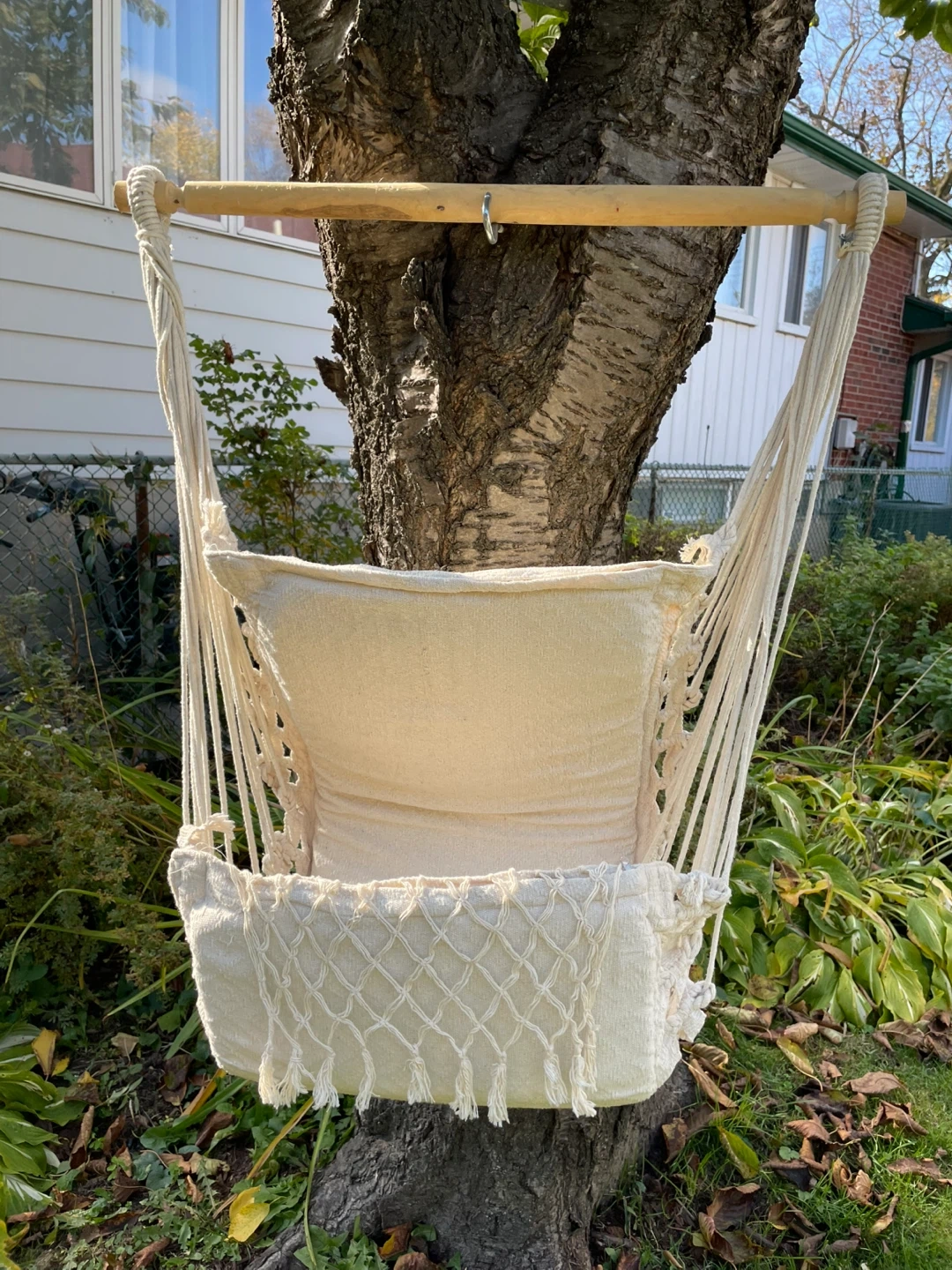73SWING FOR TODDLERS. HAND MADE IN GUYANA. NEW. BEAUTIFUL 100% COTTON HAS SUPPORT SOLID WOOD BAR FOR HANGING. CAN BE USED INDOOR OR OUTDOOR. LIGHT BEIGE COLOURED. Pick up soon in Scarborough as I am moving out of Scarborough soon. Fitzgibbon avenue