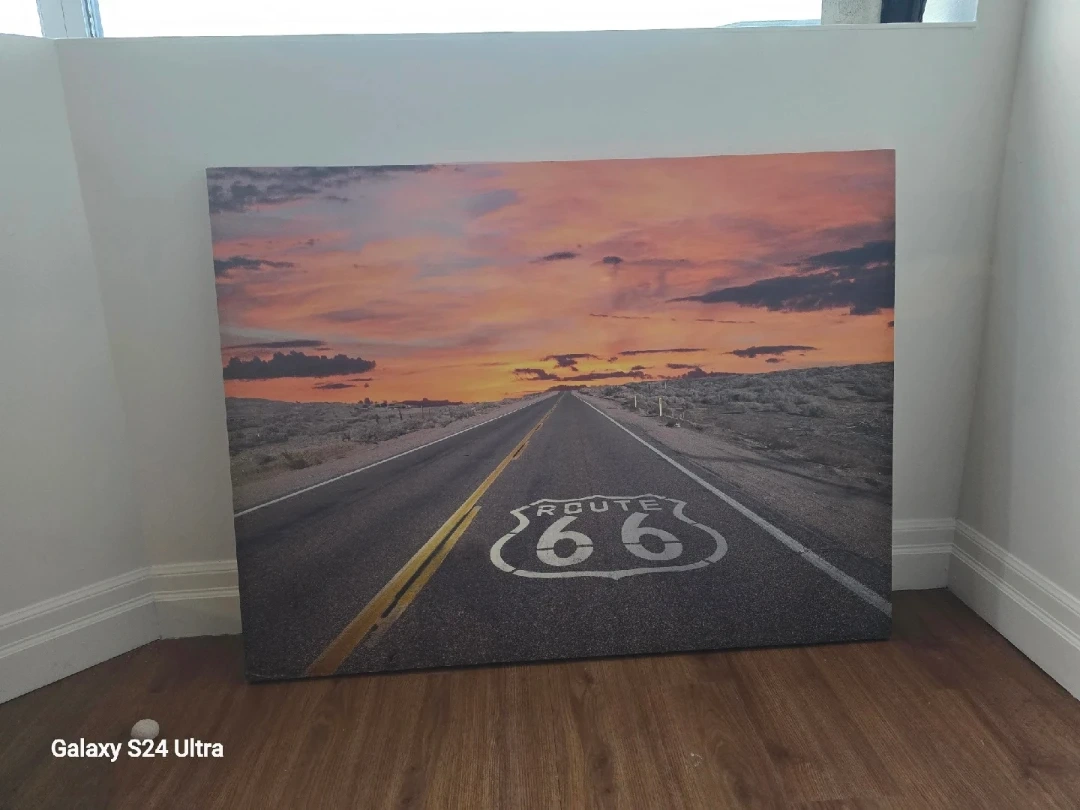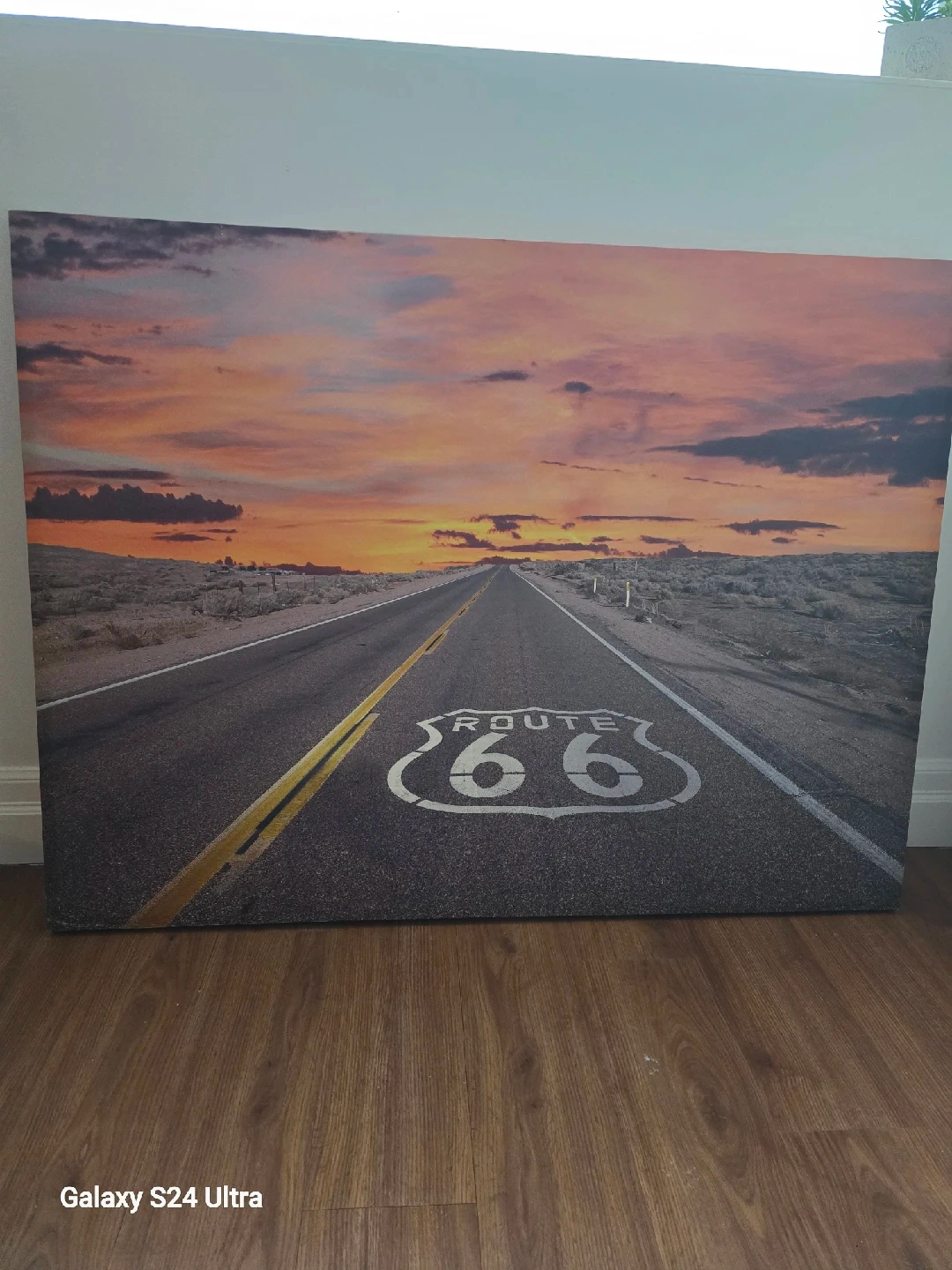 10material is canvas, the colour's in the picture not only takes up space on a lonely wall but also has a fair range of colour's in it to march with either a man cave, living room or alternative spot. only 6 months old. moving need to sell as much as I can pick up only please